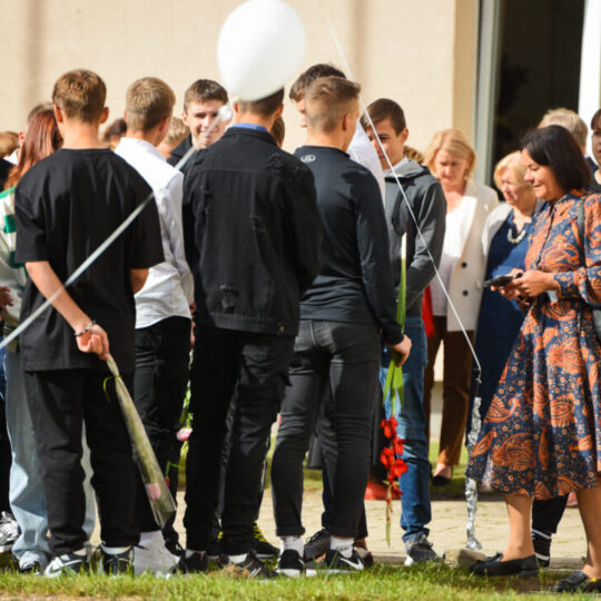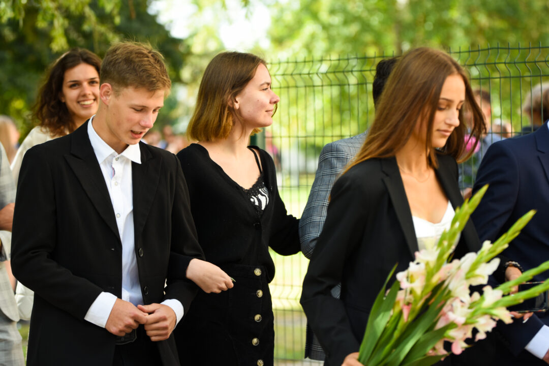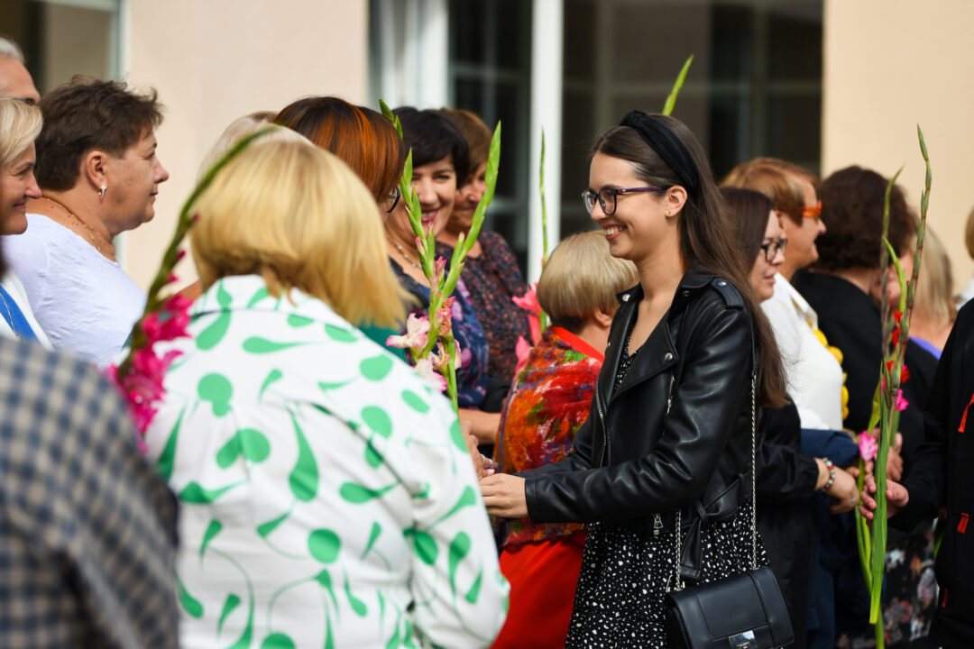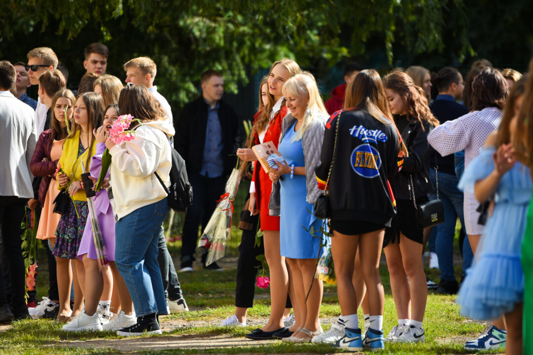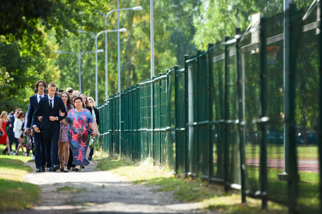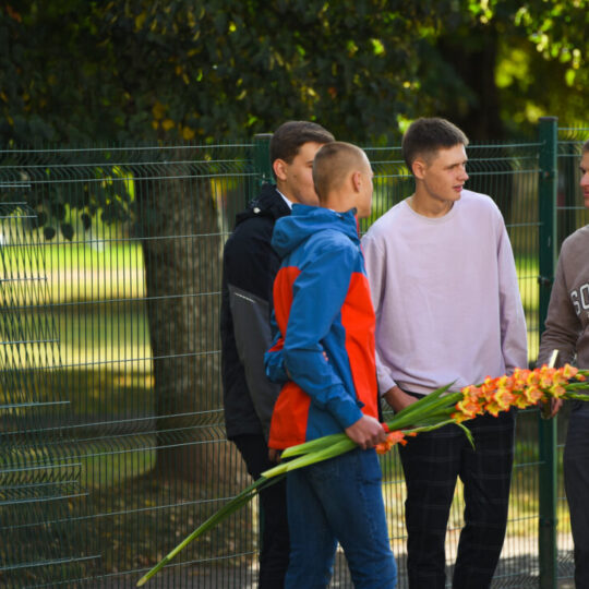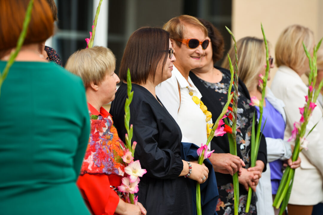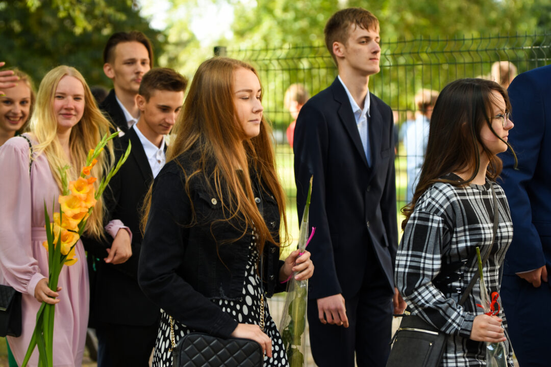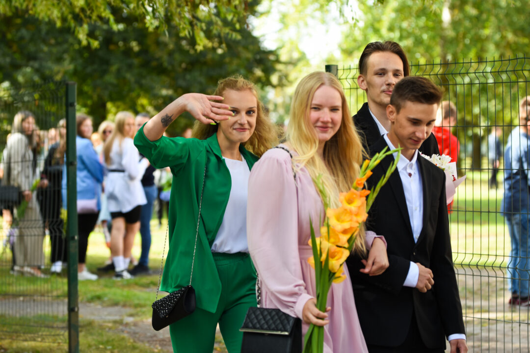 Tarp jų sklandė įvairiausių kalbų: užsiminta apie pačias nelaukiamiausias pamokas, dalintasi vasaros kelionių įspūdžiais, paliestos karo niokojamos Ukrainos temos. Vienuoliktą valandą į mokyklos teritoriją atėjo ir būrys abiturientų. Šventėje sveikino bmokyklos direktoriaus pavaduotoja J. Juodinytė bei Švietimo, kultūros ir sporto skyriaus vedėjas A. Laužadis. Jis prisiminė, kad šioje mokykloje buvo jau penkiasdešimt Rugsėjo 1-osios švenčių. „Man labiausiai įstrigo tai, kaip Paskutinio skambučio metu elgiasi abiturientai, kokie jie tada būna. Ir tada ypač matyti tai, kad jie tikrai mylėjo savo mokyklą. Noriu palinkėti visiems, kad meilę savo mokyklai jaustumėte ir tuomet, kai joje dar esate“, – linkėjo A. Laužadis.