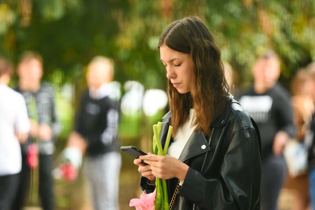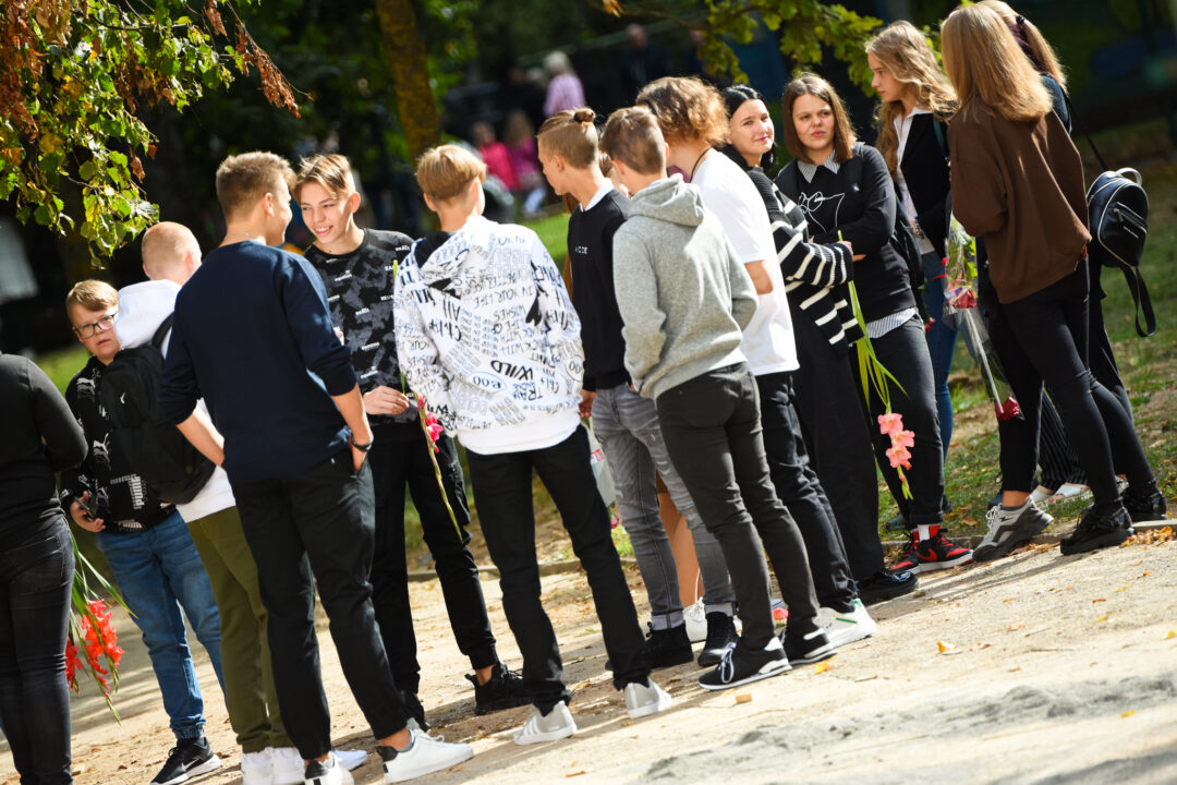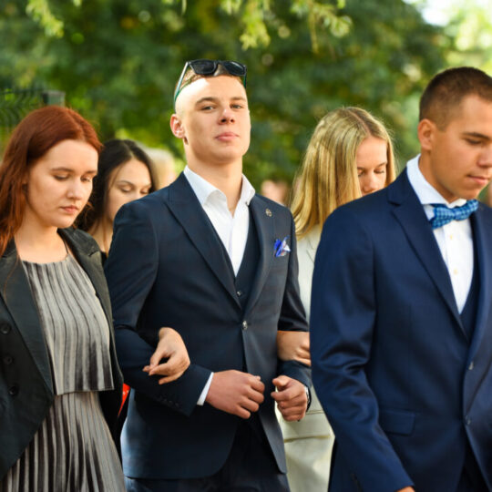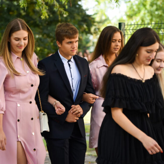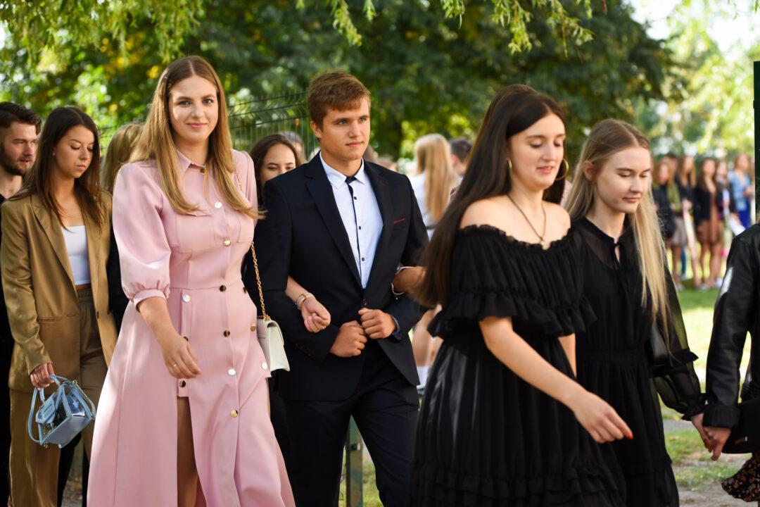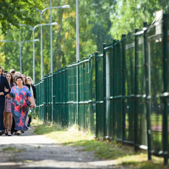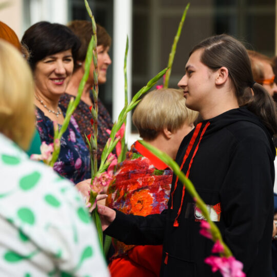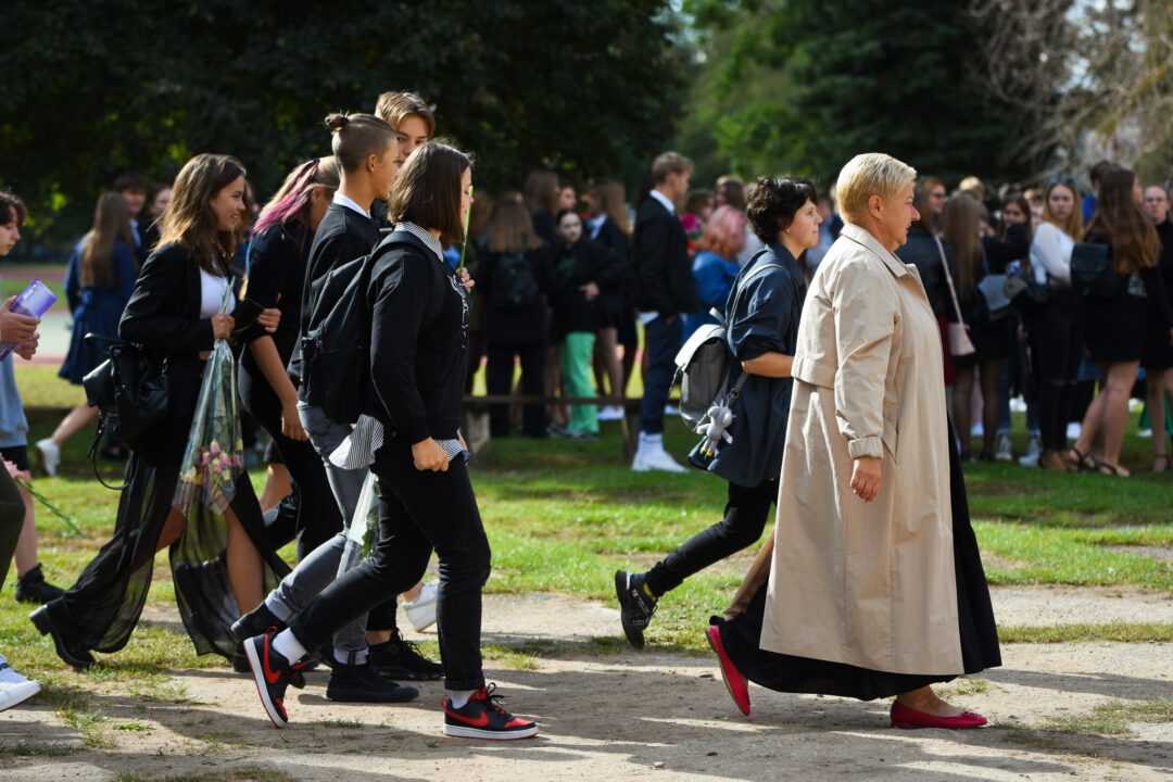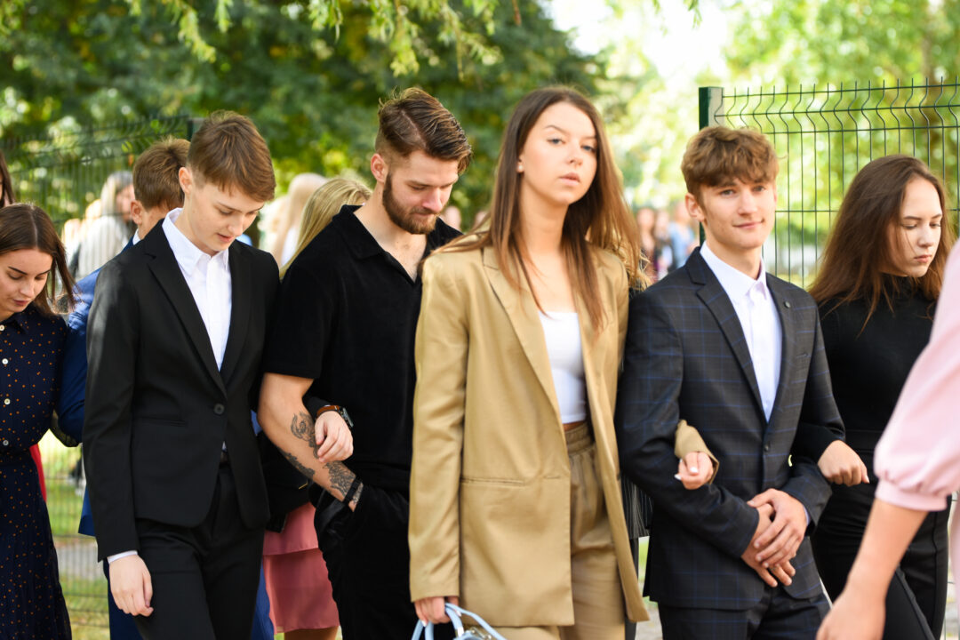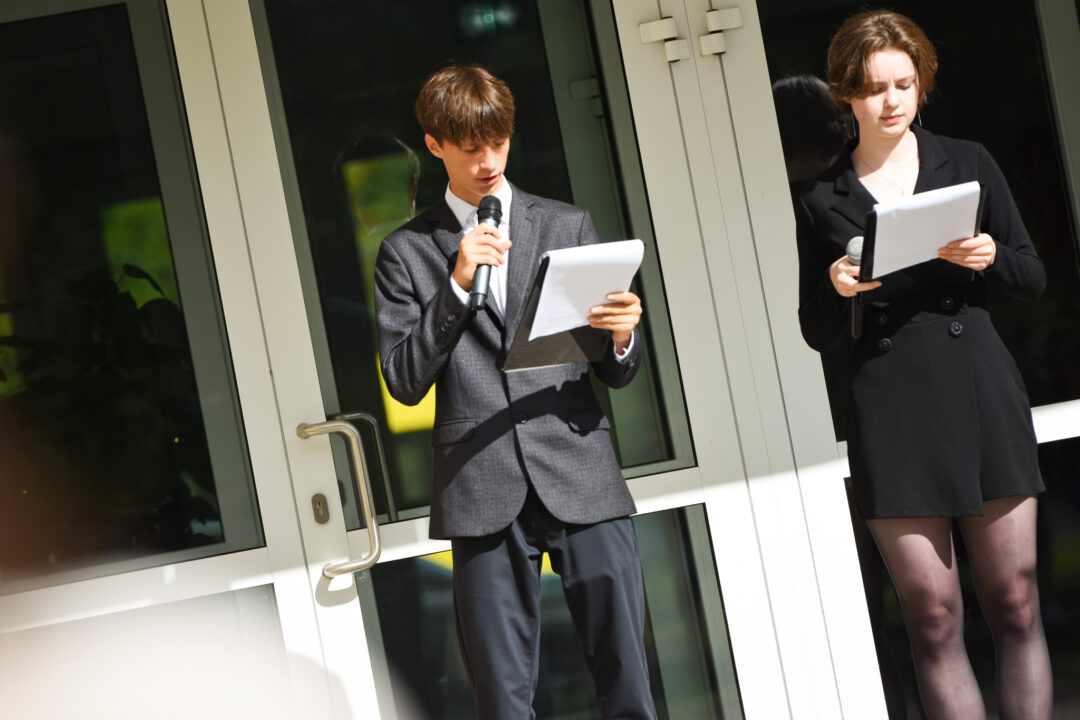 Tarp jų sklandė įvairiausių kalbų: užsiminta apie pačias nelaukiamiausias pamokas, dalintasi vasaros kelionių įspūdžiais, paliestos karo niokojamos Ukrainos temos. Vienuoliktą valandą į mokyklos teritoriją atėjo ir būrys abiturientų. Šventėje sveikino bmokyklos direktoriaus pavaduotoja J. Juodinytė bei Švietimo, kultūros ir sporto skyriaus vedėjas A. Laužadis. Jis prisiminė, kad šioje mokykloje buvo jau penkiasdešimt Rugsėjo 1-osios švenčių. „Man labiausiai įstrigo tai, kaip Paskutinio skambučio metu elgiasi abiturientai, kokie jie tada būna. Ir tada ypač matyti tai, kad jie tikrai mylėjo savo mokyklą. Noriu palinkėti visiems, kad meilę savo mokyklai jaustumėte ir tuomet, kai joje dar esate“, – linkėjo A. Laužadis.