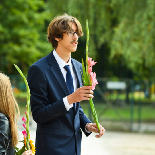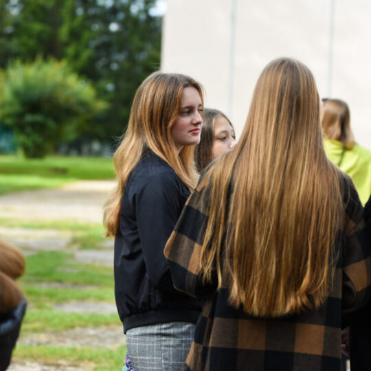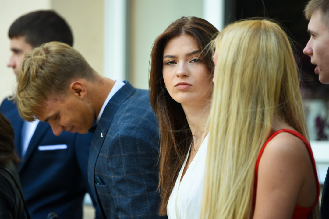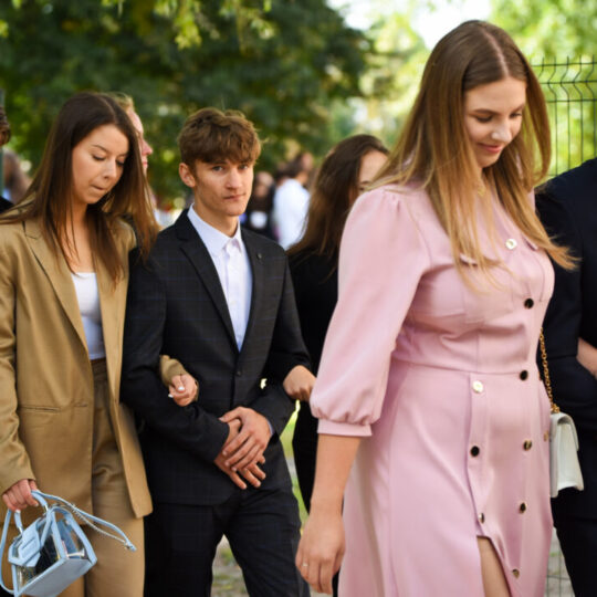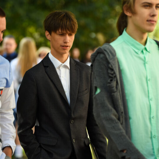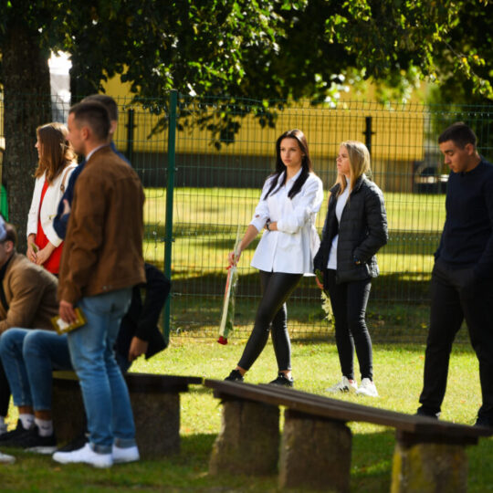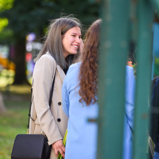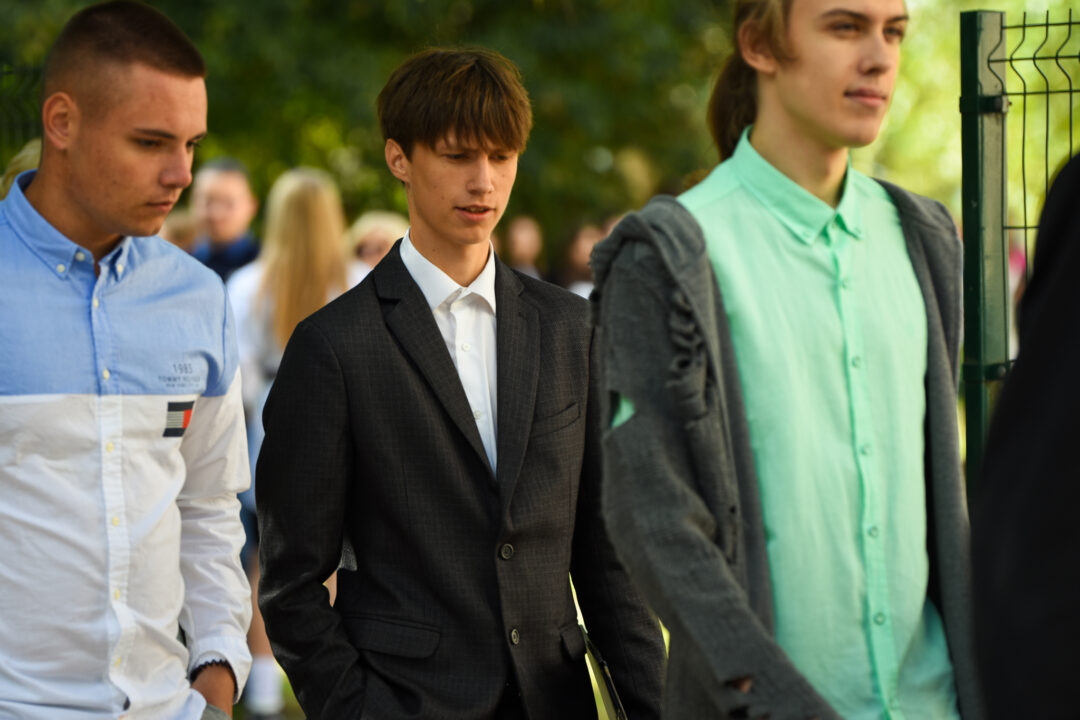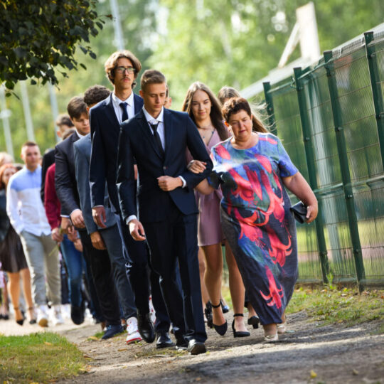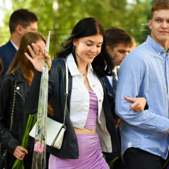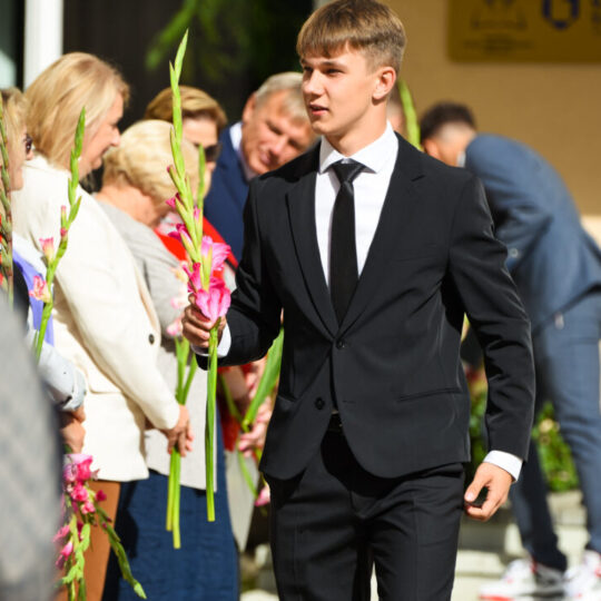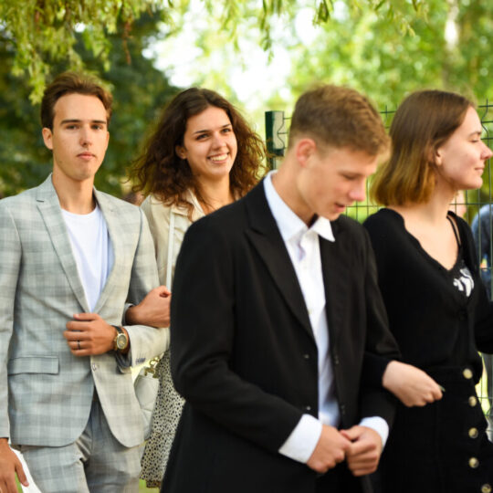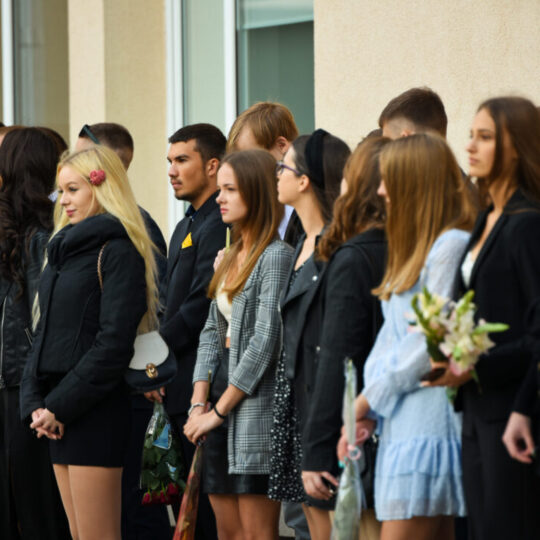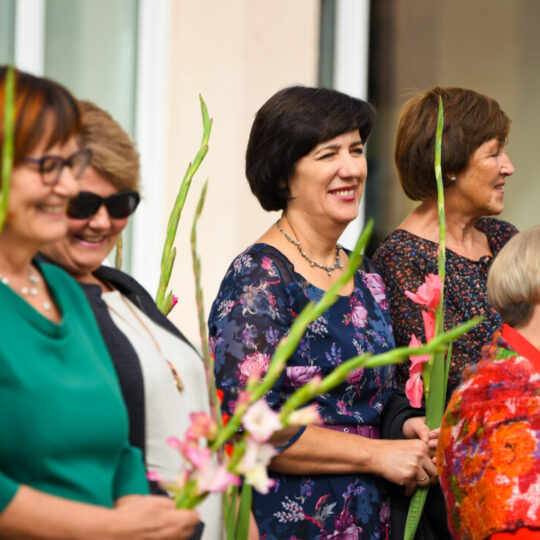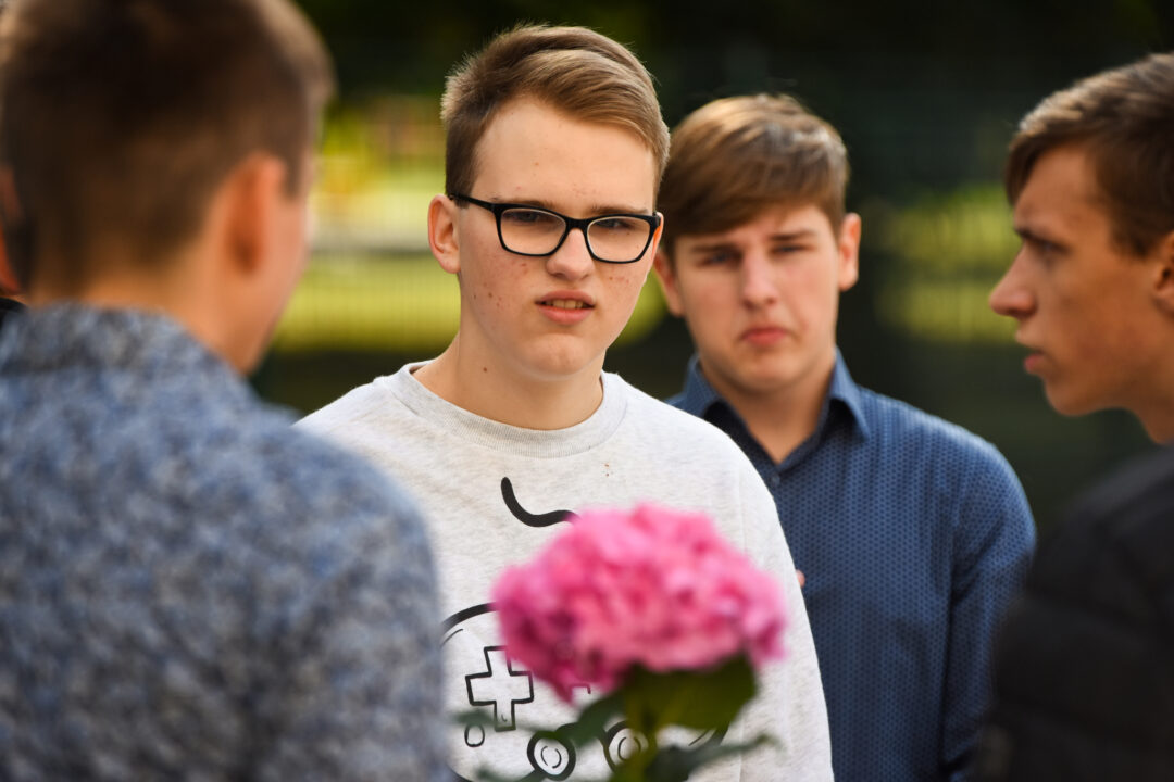 Tarp jų sklandė įvairiausių kalbų: užsiminta apie pačias nelaukiamiausias pamokas, dalintasi vasaros kelionių įspūdžiais, paliestos karo niokojamos Ukrainos temos. Vienuoliktą valandą į mokyklos teritoriją atėjo ir būrys abiturientų. Šventėje sveikino bmokyklos direktoriaus pavaduotoja J. Juodinytė bei Švietimo, kultūros ir sporto skyriaus vedėjas A. Laužadis. Jis prisiminė, kad šioje mokykloje buvo jau penkiasdešimt Rugsėjo 1-osios švenčių. „Man labiausiai įstrigo tai, kaip Paskutinio skambučio metu elgiasi abiturientai, kokie jie tada būna. Ir tada ypač matyti tai, kad jie tikrai mylėjo savo mokyklą. Noriu palinkėti visiems, kad meilę savo mokyklai jaustumėte ir tuomet, kai joje dar esate“, – linkėjo A. Laužadis.