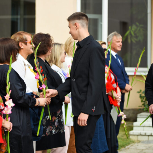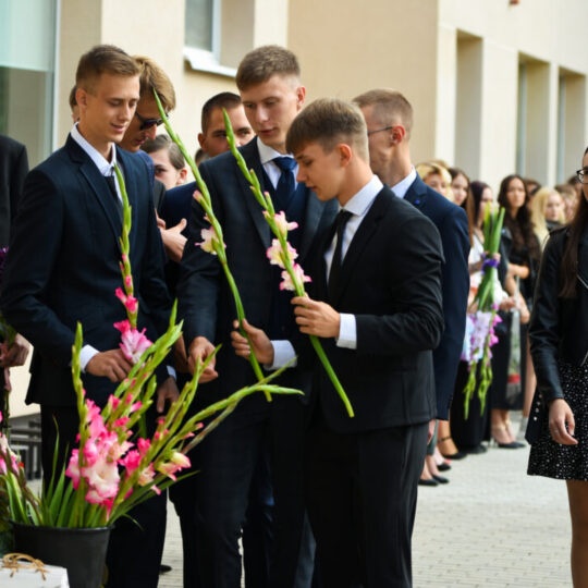 Abiturientai įteikė gėlių mokytojams, o jauniausiems, naujokams, kurie čia atėjo iš Juozo Tūbelio progimnazijos, įteiktos simbolinės dovanėlės. Mokslo ir žinių šventė baigta bendra abiturientų daina.
