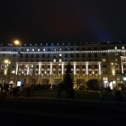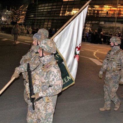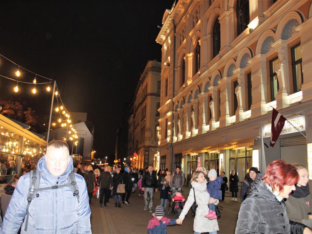 Apsilankėme aikštėje prie Laisvės paminklo – čia visą vakarą būriavosi minia, skambėjo dainos. Užsukome į Dauguvos pakrantę, Lapkričio 11-osios krantinę – vakare ten vyko karinio parado repeticija. Smalsuolių ir ten netrūko, tačiau nepalyginsi su ta minia, kokia susirinko kitą dieną, kai vyko tikrasis karinio parado pasirodymas.