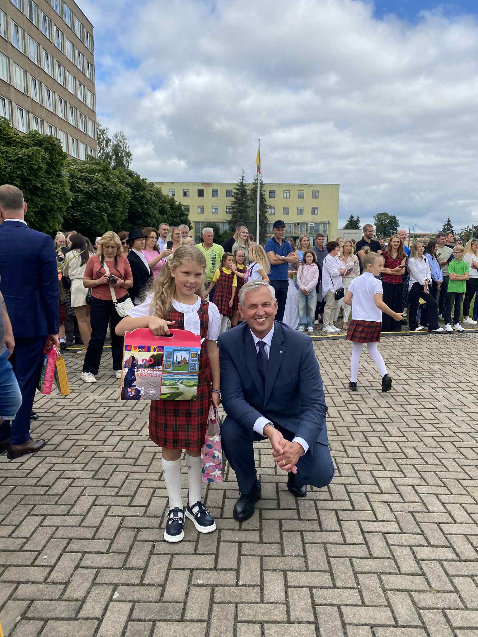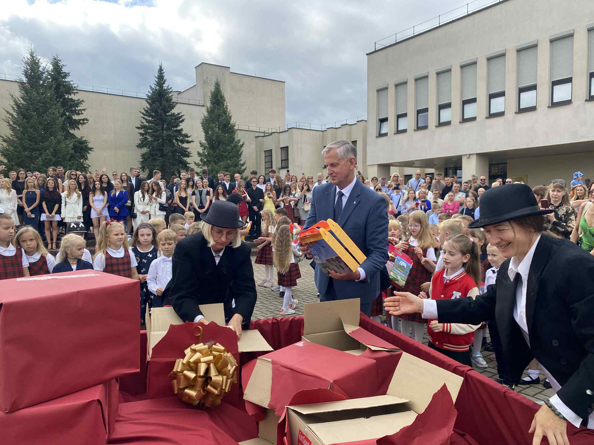 Šventei įpusėjus, pirmokų laukė netikėtumas – keturračiu su dovanomis į Sąjūdžio aikštę atvažiavo meras. Moksleiviams buvo įteikti „Pirmoko kraiteliai“, kuriuose jie ras įvairių mokyklinių priemonių sėkmingiems mokslo metams užtikrinti.