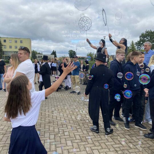 Pasibaigus iškilmėms, mokiniai ir jų artimieji buvo kviečiami žaisti su muilo burbulais, prisijungti prie įvairių pramogų.