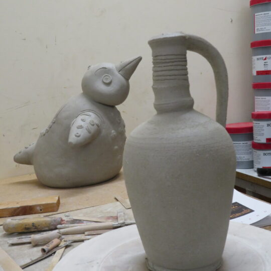 Ketvirtadienio popietę dvaro dirbtuvėse nebesijautė kūrybinių aistrų ar ieškojimų, mat dalis keramikos darbų jau džiūvo krosnyje, o jų autoriai leidosi pasivaikščioti vaizdingomis apylinkėmis, savuosius kūrinius dar lipdė, dailino keturi keramikai. Visi pristato savo individualų stilių.