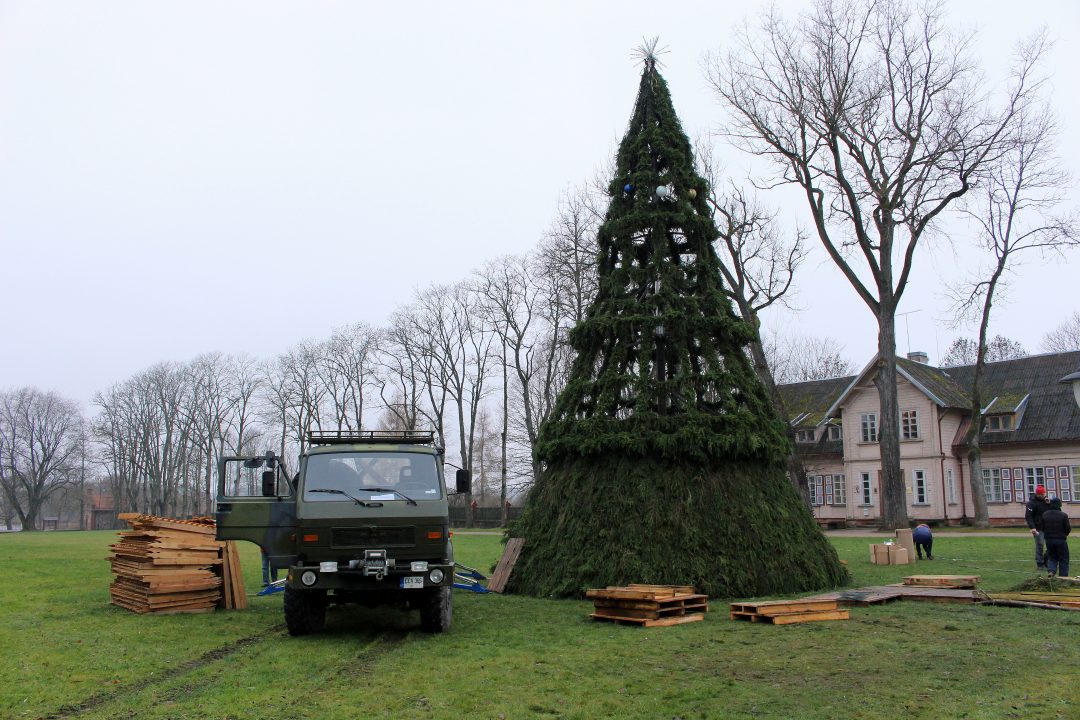 Vakar paskutinius eglės gražinimo akcentus dėliojo Rokiškio menininkai. Jie šiais metais metalinį karkasą apvilko natūraliais rūbais – eglių šakomis. Prie dvaro darbavosi šviesų ir garso specialistai, kurių pagalba rezidencijos atidarymas taps itin garsus ir spalvingas.