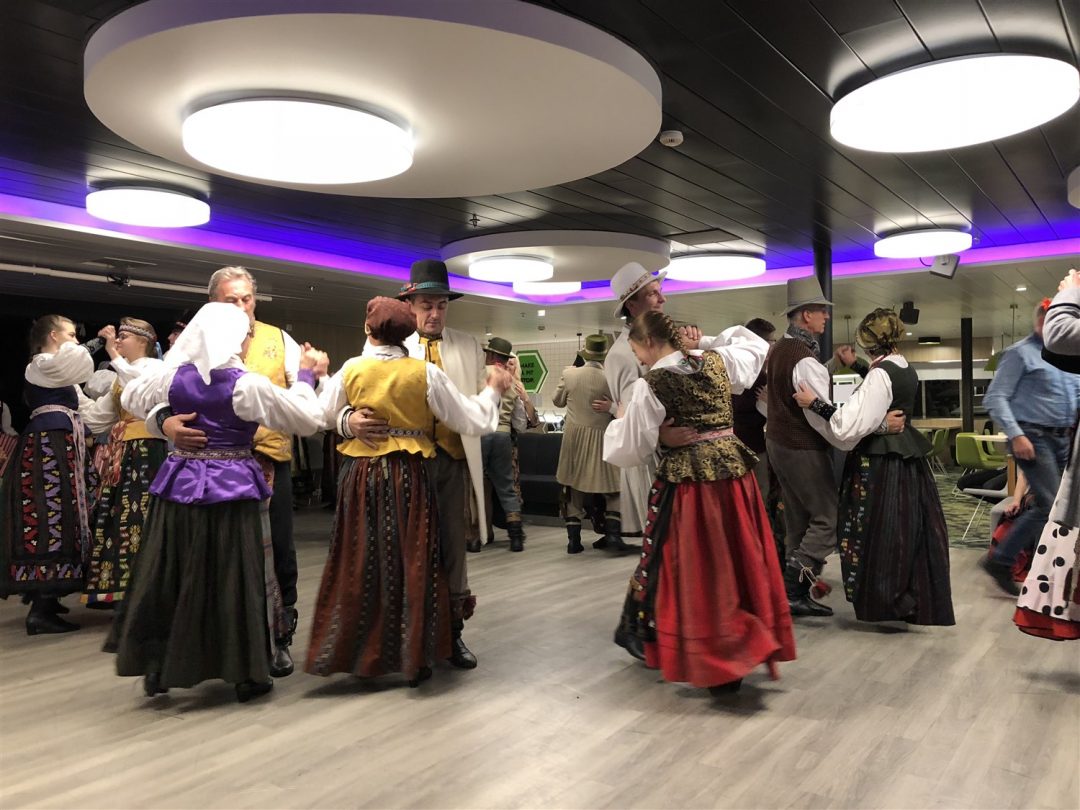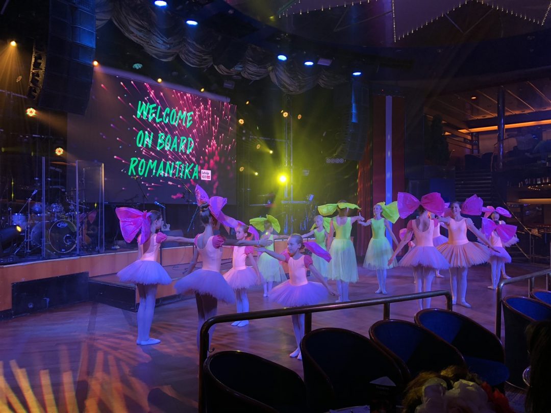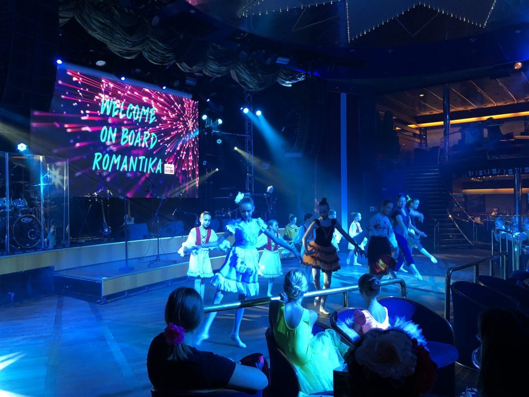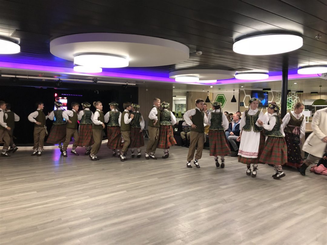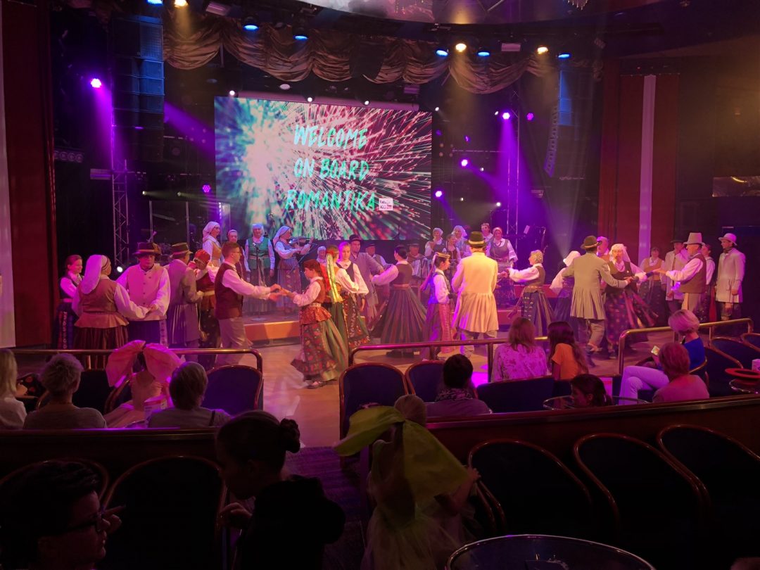 Laivas išties didingas, tad be Kotrynos pagalbos neišsiverčiau. Čia visko apstu: parduotuvių, kavinių, sauna, nestinga visų kitų patogumų, prie kurių įpratęs šiuolaikinis žmogus. Kartu buvo surengtas šokių kruizas – įvairiausi Lietuvos meniniai kolektyvai visą savaitgalį linksmino laivo keleivius. Kaip pasakojo Kotryna, kaskart keliautojus pasitinka vis kitoks teminis kruizas.