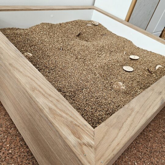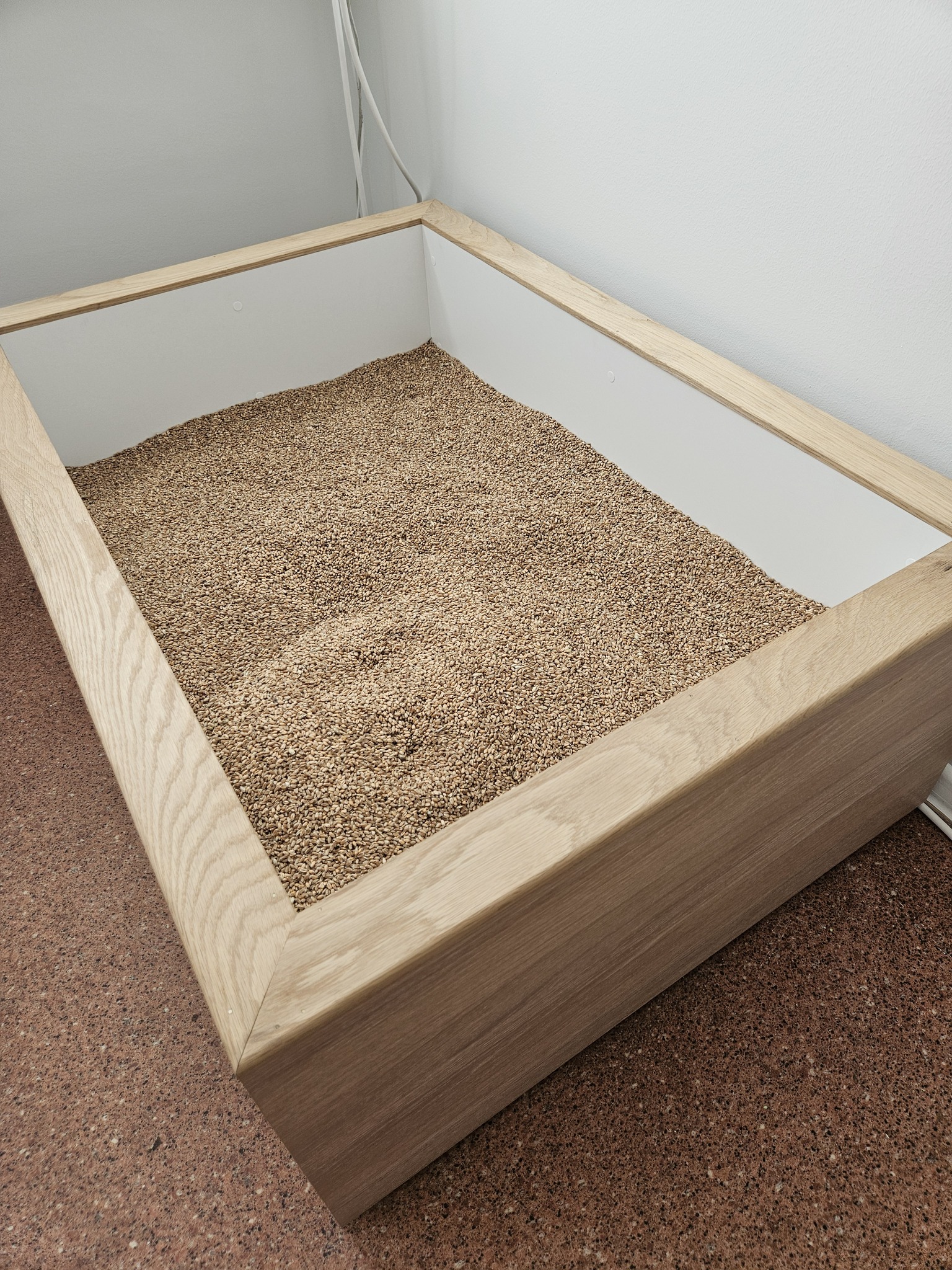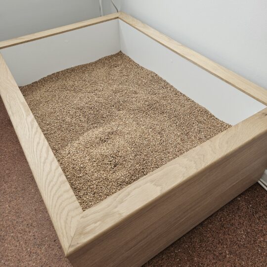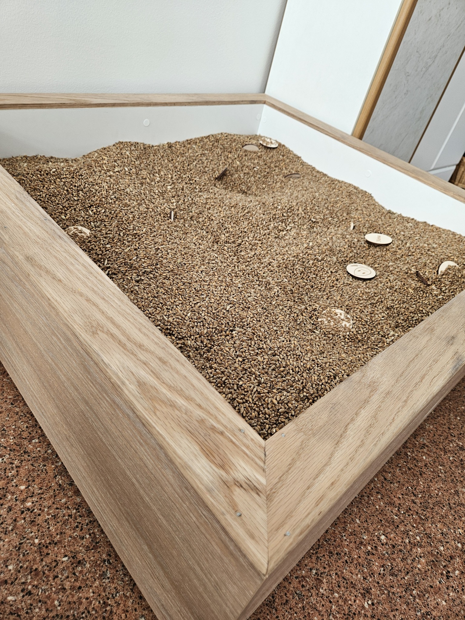 „Parsivežiau idėją iš užsienio, bet Lietuvoje kol kas niekur tokių nemačiau. Pagaminome medines dėžes, o į jas supylėme grūdų dribsnių, į kuriuos prikaišiojome įvairių medinių veidukų, demonstruojančių įvairiausias emocijas – nuo liūdno iki linksmo. Dribsniai šildomi, todėl labai malonu įkišti į juos rankas ir pasklaidyti, paieškoti veidukų“, – sako D. Kietienė.