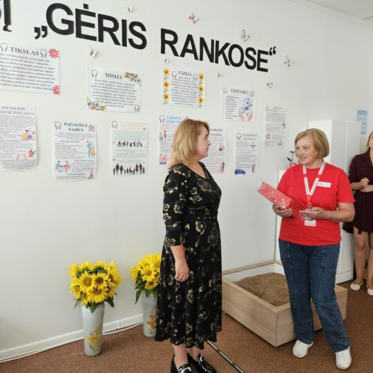 Pasidžiaugęs, kad VšĮ „Gėris rankose“ savo geriems ir reikalingiems darbams dabar turės jaukias, erdvias patalpas, meras akcentavo, kad vis dėlto svarbiausias, didžiausias turtas yra darbuotojai, nes be jų nieko ir nevyks. Tad šios patalpos ir jiems taps užuovėja, poilsiu nuo darbo problemų bei rūpesčių.