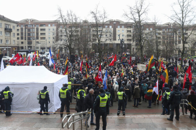 Protestuotojai rankose laikė plakatus su užrašais „Komunistinės nkvedistinės kgbistinės išperos lauk iš valdžios“, „Lauk landsberginį gaivalą! Šalin kovidinį PIŠ‘o fašizmą“, „Ne už tokią laisvę žuvo lietuviai“.