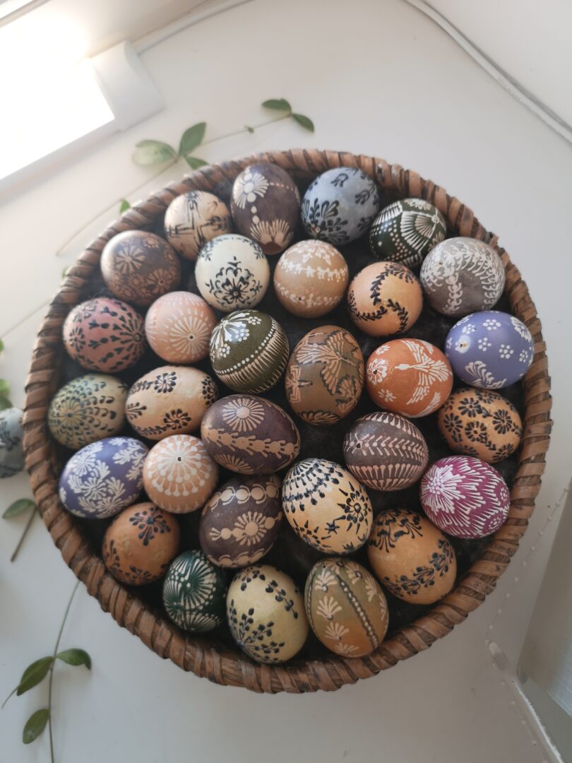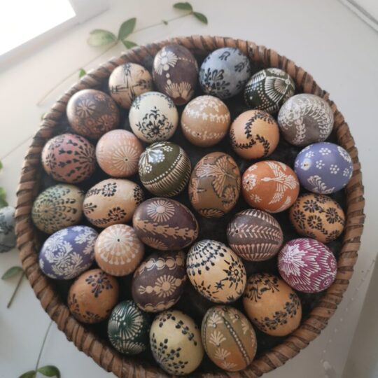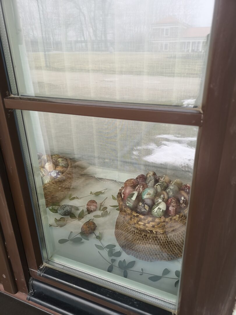 Paroda parengta iš muziejaus fondų ir joje – net praėjusio amžiaus vidurio eksponatai. Muziejininkė Giedrė Spundzevičienė sakė, kad vienas margutis yra net 1956 m., margintas vašku su augaliniu atspaudu. Tiesa, daugiausia eksponuojami skutinėti kiaušiniai, nes toks marginimo būdas labiau įprastas aukštaičiams. Parodoje taip pat – įvairiausių verbų kolekcija ir Velykų papročių atributai – ridinėjimo loveliai, paukšteliai iš šiaudų. „Parodą rengėme, kol dar nebuvo galima leisti lankytojų, todėl ji matoma pro langus“, – sakė G. Spundzevičienė.