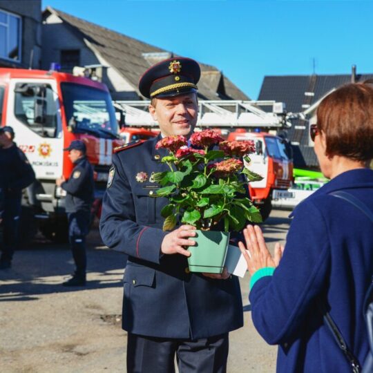 Šiemet jokių iškilmingų šventimų nenumatyta, bet visi norintys šiandien gali apžiūrėti Priešgaisrinės gelbėjimo tarnybos naudojamą techniką, kuri stovi išrikiuota kieme, Respublikos g., ir laukia lankytojų.