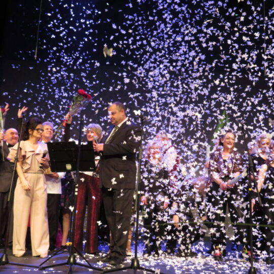 Renginį stebėjo SGN gyventojų artimieji, pažįstami. „Gimtajam…“ pavyko pakalbinti tuos žmones, kurie nuolat gyvena šalia neįgaliųjų, – tai rokiškėnų porą Aureliją ir Vidmantą. Jie yra Sėlių g. įsikūrusių grupinio gyvenimo namų kaimynai. Abu emocingai pasakojo, kaip nuoširdžiai tų namų gyventojai jiems įteikė kvietimus į renginį. Tokio kvietimo esą „atsisakyti praktiškai neįmanoma“. Aurelija su anūke jau viešėjo grupinio gyvenimo namuose per Atvelykį ir susibičiuliavo su kaimynais. Jos nuomone, šis renginys puikus, o jį suorganizuoti labai sunku. Visgi viską atperka neįgaliųjų atvirumas, todėl atmosfera labai nuoširdi ir paprasta. Vidmantas pastebėjo: „Šie žmonės nemoka užsidėti „kaukių“. Jie ir dainuoja be „kaukių“. Žavi jų natūralumas. Tai ir paliečia širdį.“