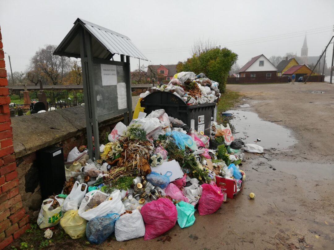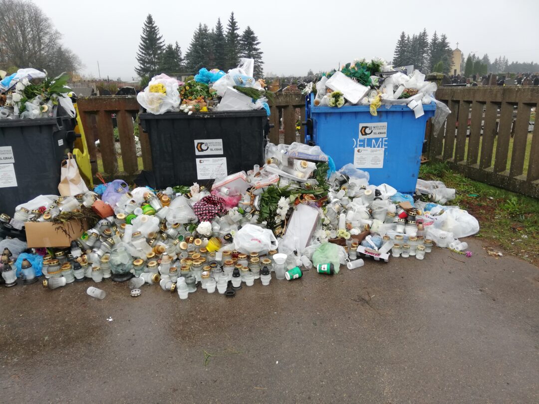 Kasmet po Visų šventųjų šventės kapinių konteineriai skęsta šiukšlėse. Ne išimtis ir šie metai. Prie kapinių esančiuose konteineriuose ir šalia jų galima rasti visko: pradedant dirbtinėmis gėlėmis, sudegintomis žvakėmis ir baigiant lapais, sausų pusryčių pakeliais ar net buities atliekų maišais, kuriuos žmonės turbūt atsivežė tiesiai iš namų. Paprasčiau tariant, vaizdas – ne koks.