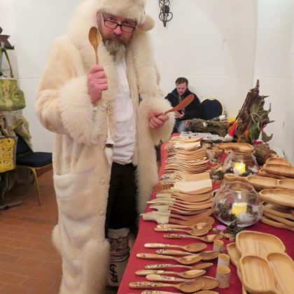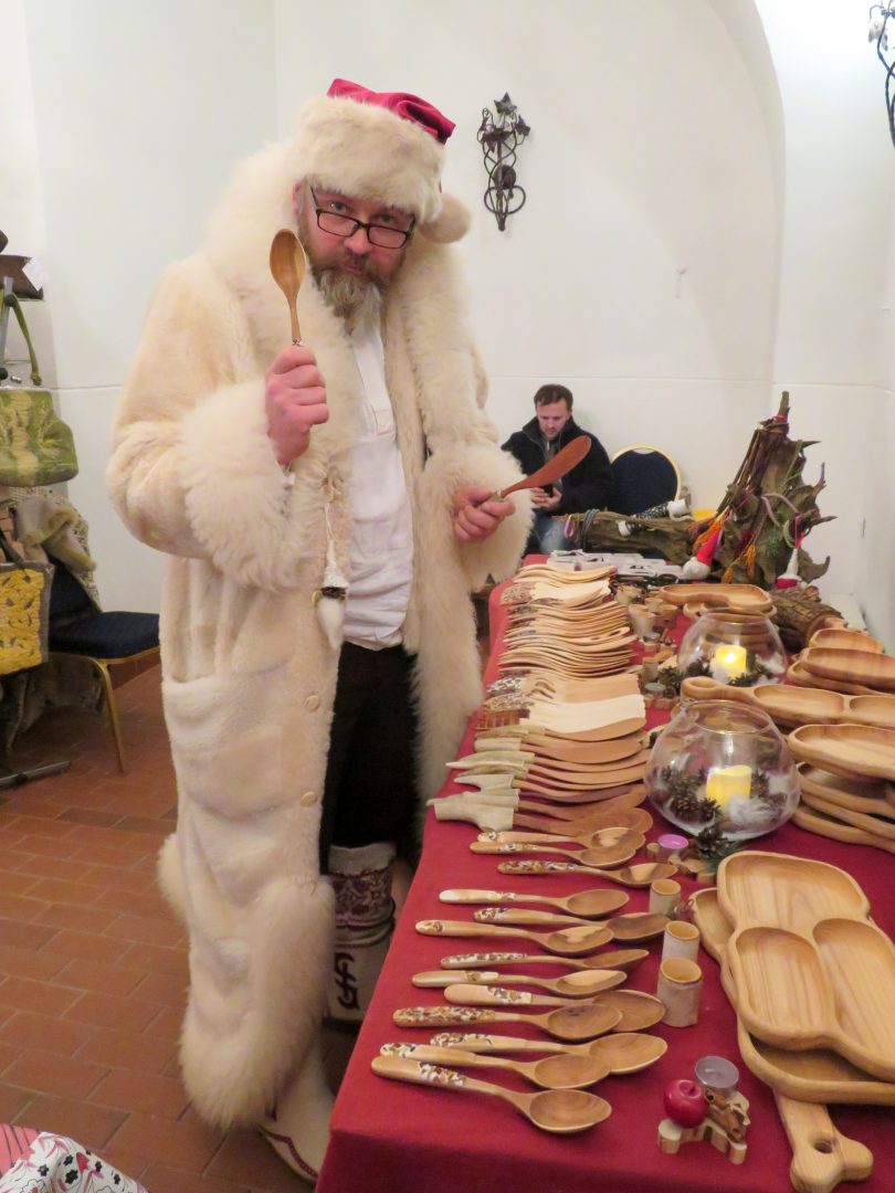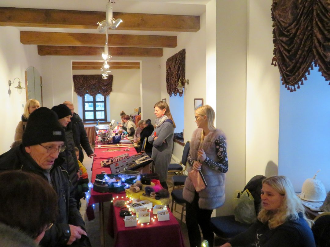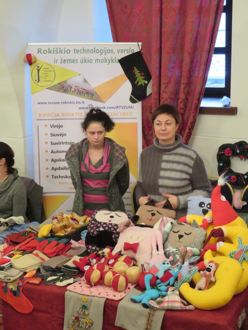 Pirmajame pastato aukšte įsikūrę tautodailininkai ir amatininkai siūlė įsigyti vienetinių kūrinių iš medžio, taip pat molio ir veltos vilnos gaminių, žaislų, papuošalų, įvairiausių rankų darbo suvenyrų. Norintieji tolėliau gyvenančius artimuosius ar pažįstamus pradžiuginti ranka rašytu sveikinimu turėjo progą įsigyti meniškų atvirukų. Rokiškio technologijos, verslo ir žemės ūkio mokyklos siuvėjos mokinės joms skirtą prekystalį daugiausiai buvo nuklojusios siūtais vaikiškais žaislais, pagalvėlėmis, pirštinaitėmis, kitomis smulkmenomis. Kai kurios iš jų „pritaikytos“ Rokiškiui (vaizduoja kiškius) arba pagal kinų horoskopą artėjantiems Kiaulės metams. Gurmanai galėjo pasilepinti – įsigyti mėsos gaminių, obuolių sūrių su kakava ir pan.