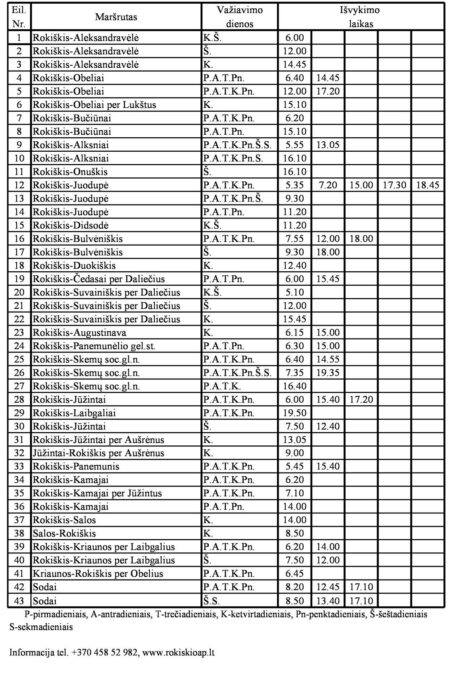 Rokiškio autobusų parkas skelbia priemiesčio maršrutų tvarkaraštį nuo rugsėjo 1 d.