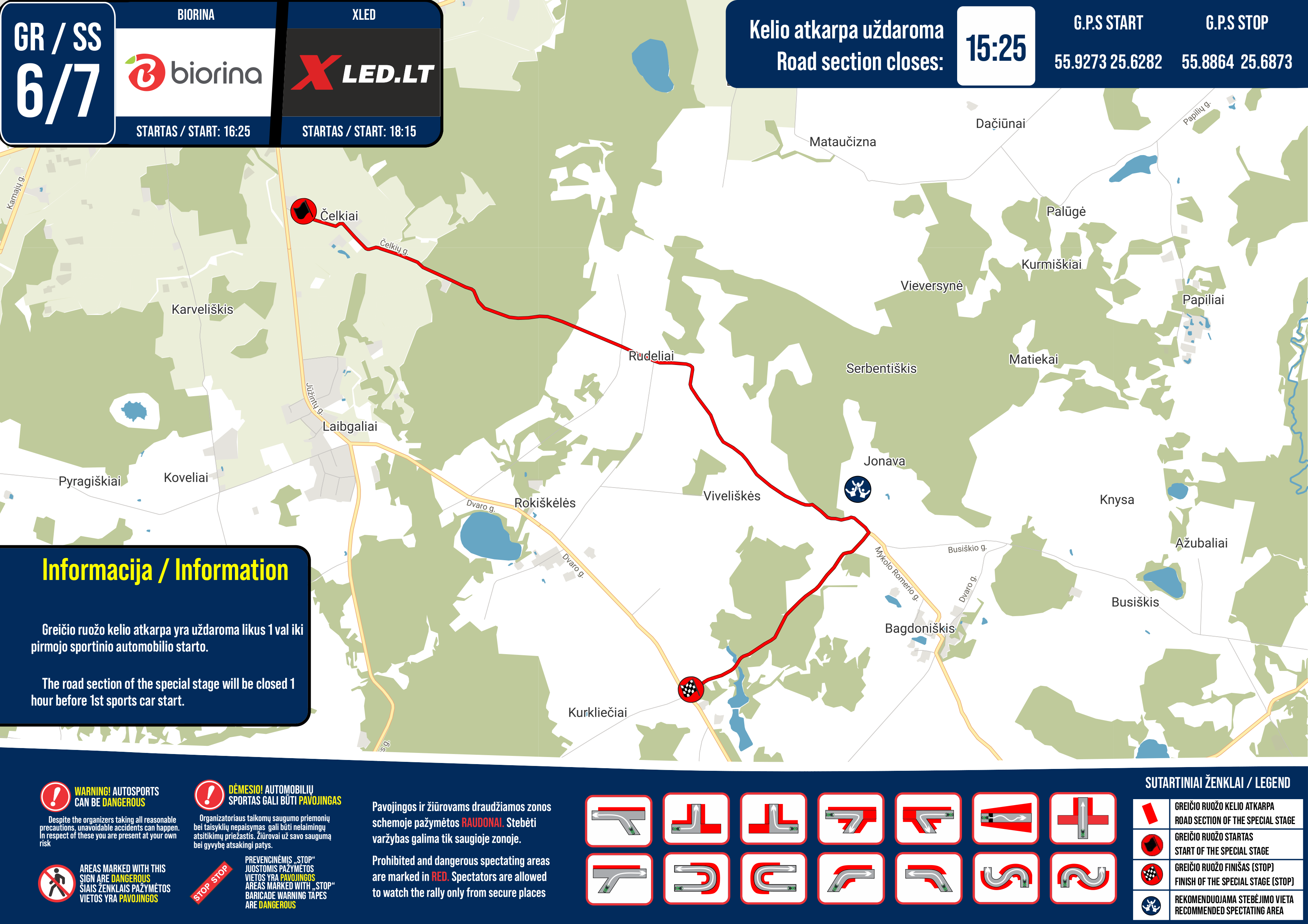 Greičio ruožai yra uždaromi likus vienai valandai iki pirmojo automobilio starto.