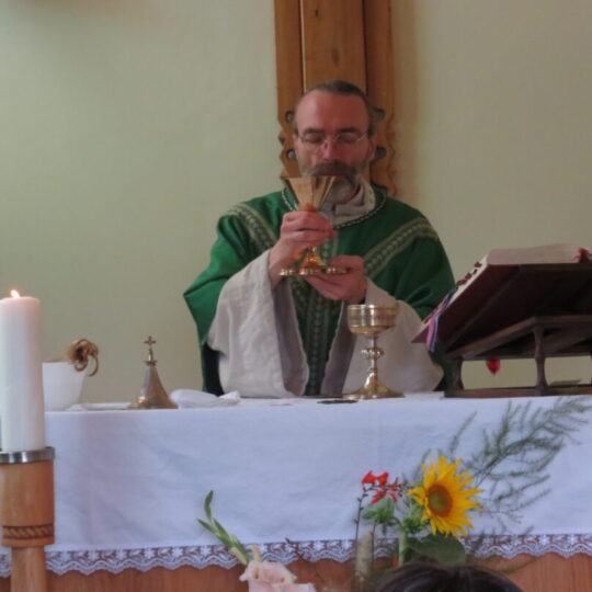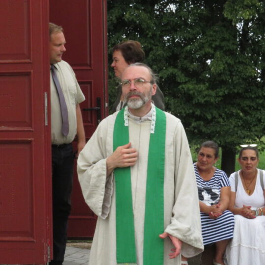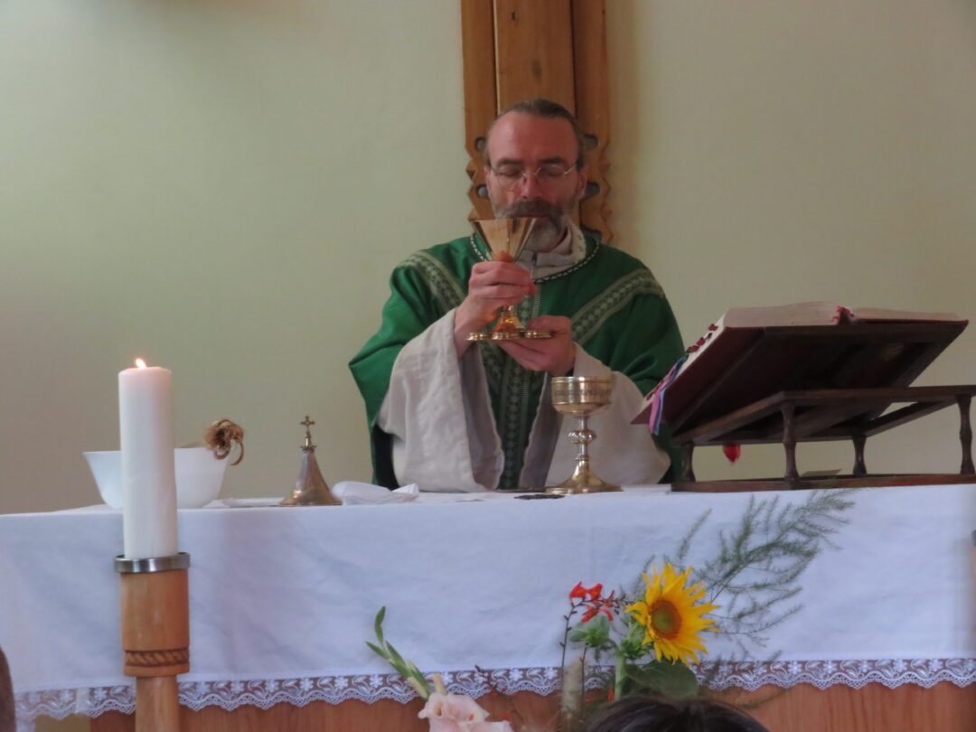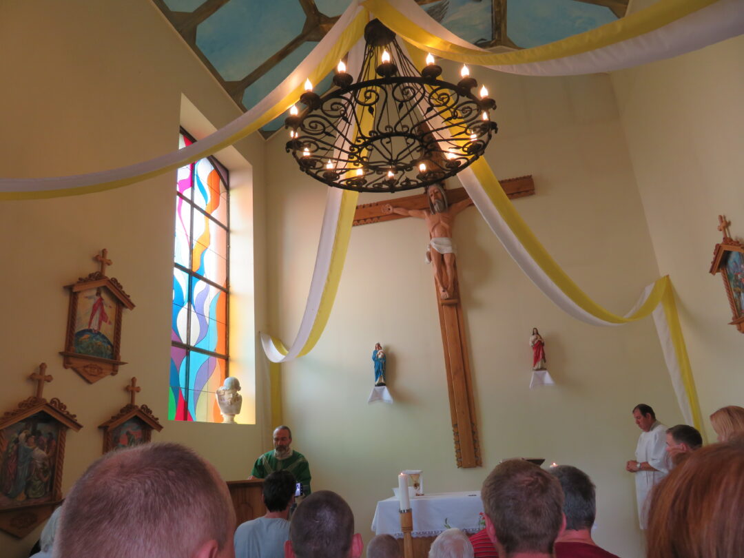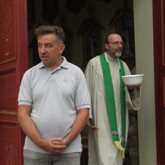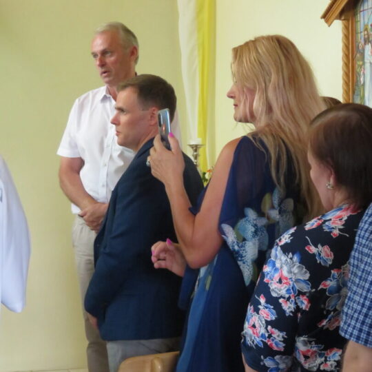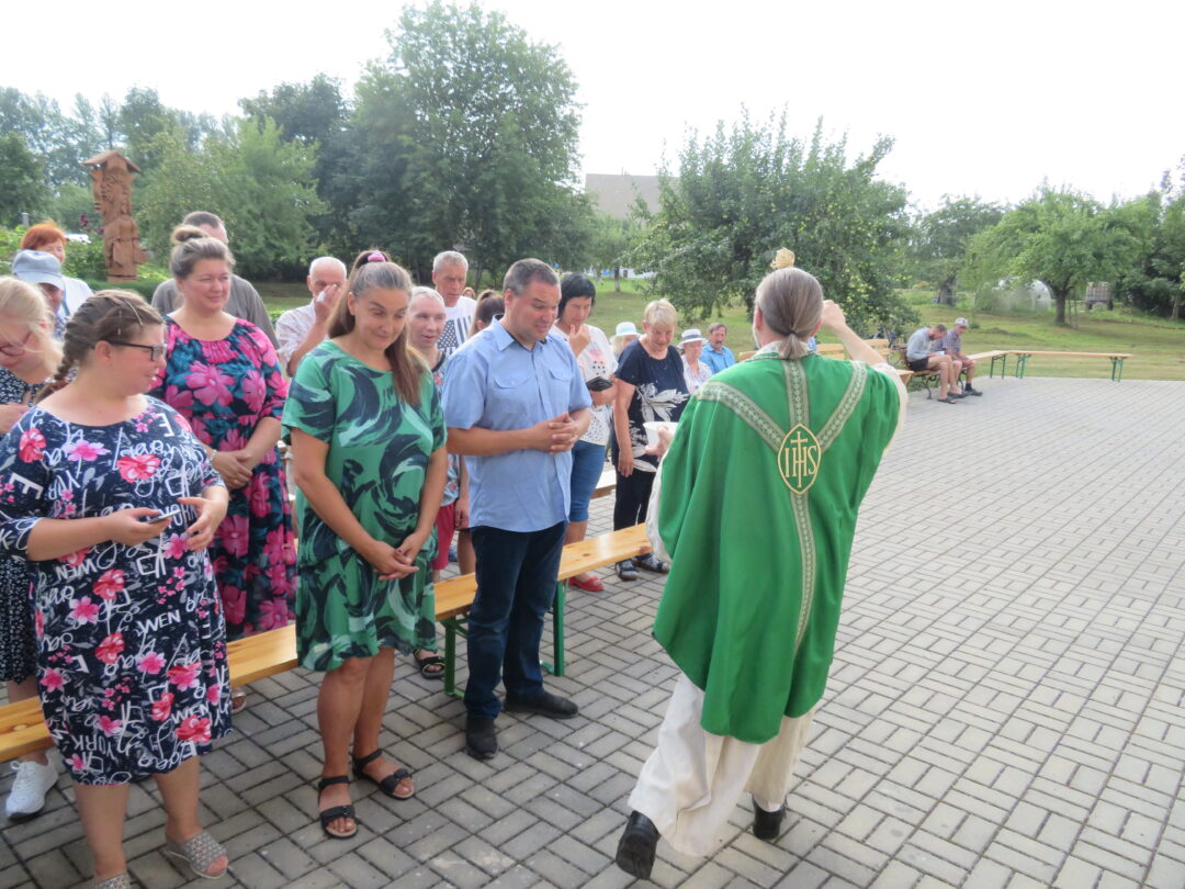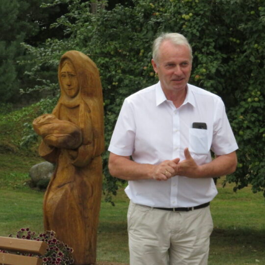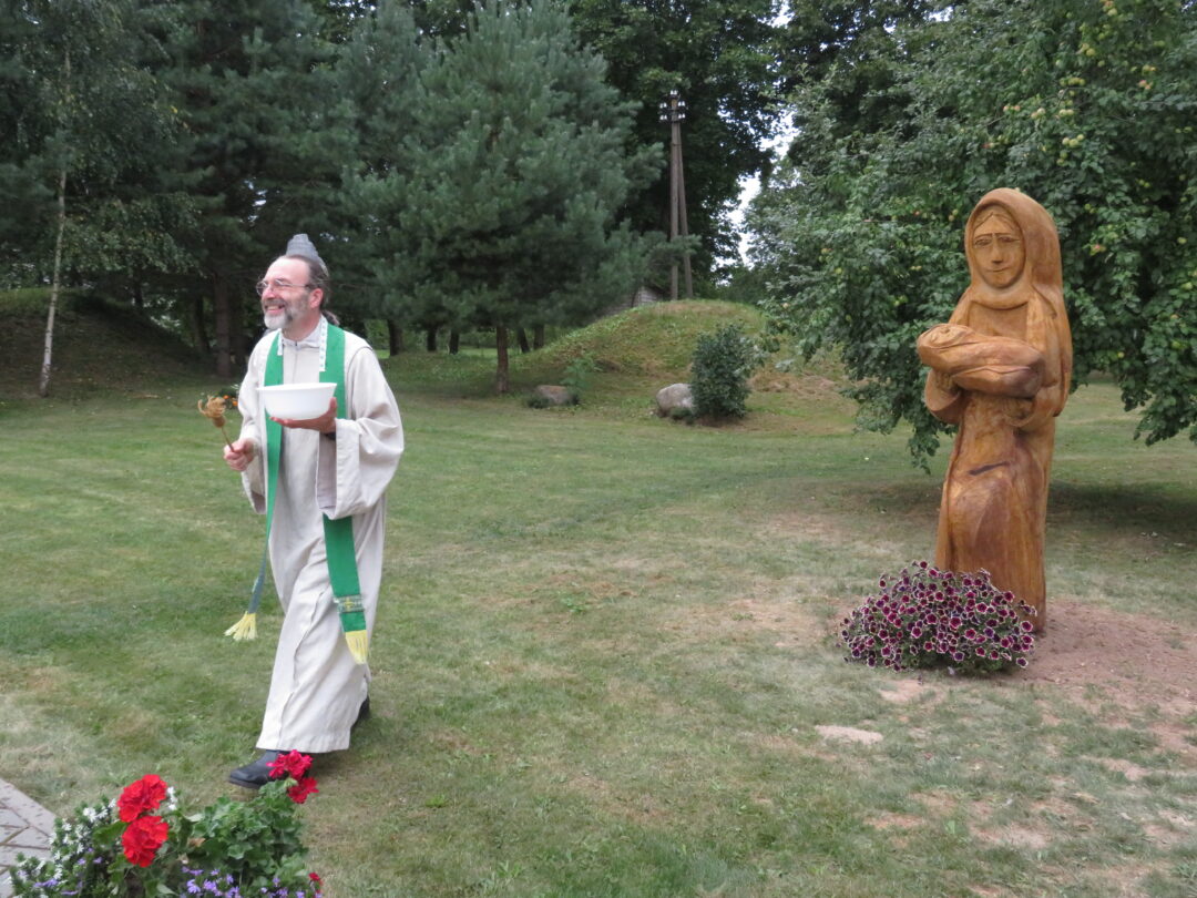 Šalia koplyčios pašventinta G. Varno sukurta Šv. Marijos skulptūra, kuri tampa būsimos prakartėlės pradžia.