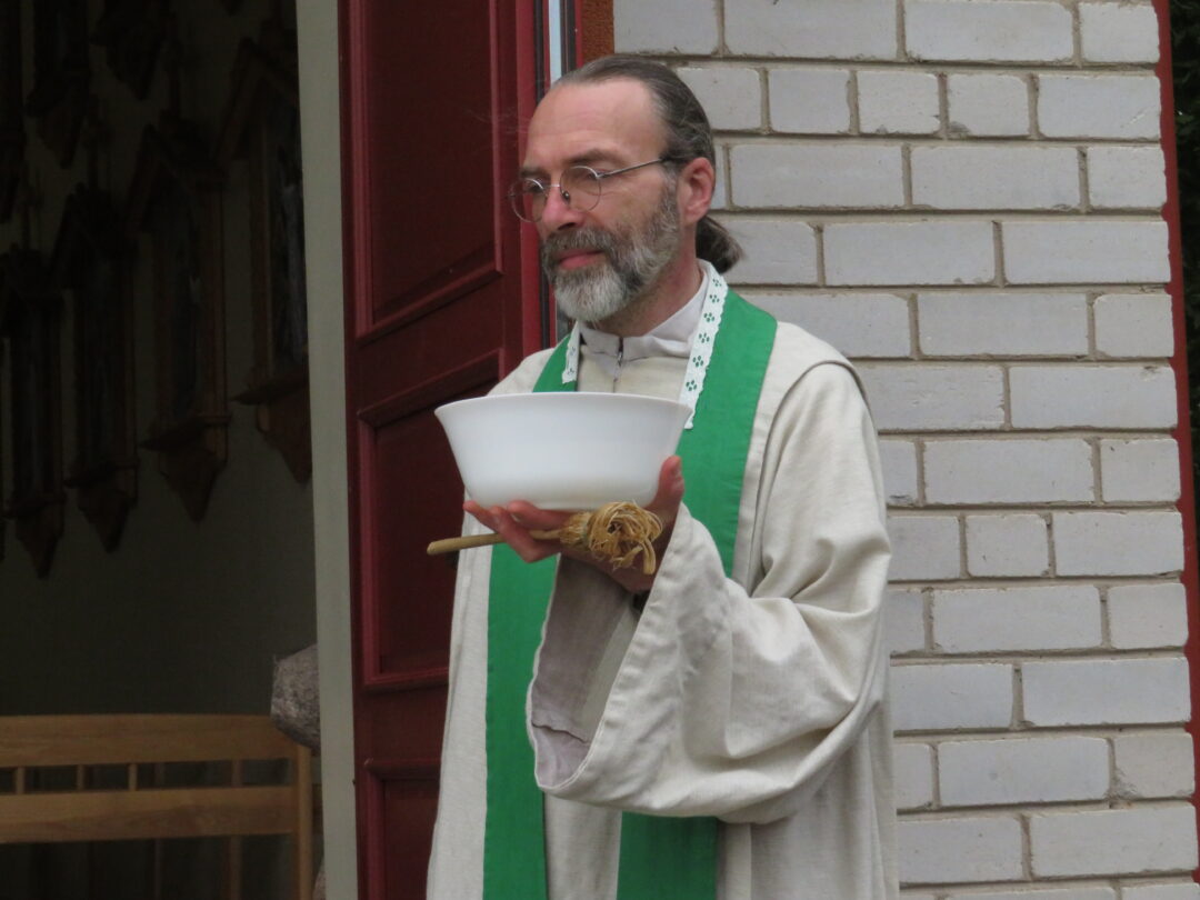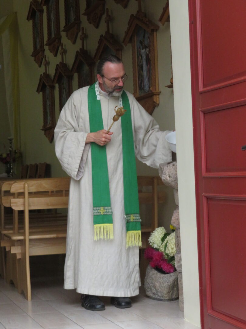 Plenero uždarymas prasidėjo šv. Mišiomis Skemų koplyčioje. Po jų palaimintas originalus švęsto vandens akmeninis indas prie šių maldos namų durų. Jį sukūrė I. Skripka. Pasak autoriaus, idėja gimė bebūnat koplyčioje. Kunigas Laimonas Nedveckas prisiminė jos kūrimo pradžią ir susiejo su šiandiena: „Viskas buvo panašu į trečią pasaulio kūrimo dieną. Bet kuo toliau, tuo labiau ji panašėja į mažą bažnytėlę, o kiekvienoje bažnytėlėje prie įėjimo yra indas su švęstu vandeniu. Tai reiškia, kad Kristus yra tos durys, pro kurias įžengiame į dangaus karalystę, o švęstas vanduo prie durų mums primena krikštą. Čia nuolatos bus švęsto vandens.“
