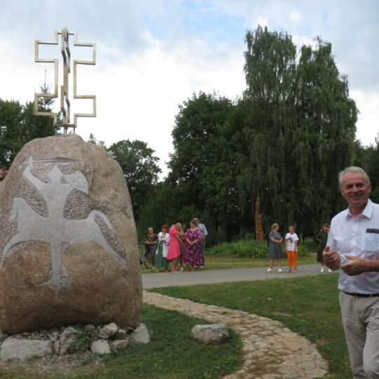 Prie tako, vedančio koplyčios link, įsikūrė dar dviejų kūrėjų darbai – S. Kronis nukalė du metalo žibintus, o D. Čepas masyviame riedulyje iškalė stilizuotą Vytį. Šie darbai yra praėjusių plenerų tąsa, mat taką puošia jau keletas S. Kronio kurtų žibintų. D. Čepas irgi ne pirmus metus darbavosi prie riedulio – jau anksčiau virš jo iškeltas metalinis dvigubas kryžius, toks pat iškaltas vienoje akmens pusėje. Pasak autoriaus, tai šviesos nešėjo ženklas.