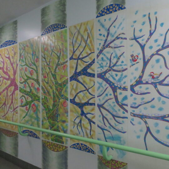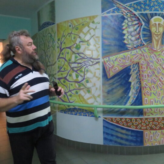 Plenero kūrybinis vadovas A. Bagdonas tapė sieninę freską gyvenamajame pastate. Ilgame koridoriuje ant sienų pastelinėmis spalvomis pražydo pievų ir darželių gėlynai, raminamai žvelgia angelas. „Tai dažų ir kūrybinių minčių dėlionė“, – pristatydamas freską kalbėjo dailininkas.