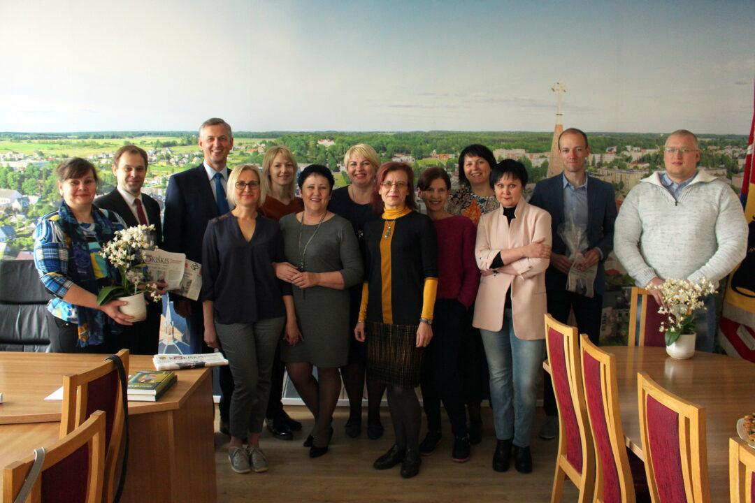 Spaudos atgavimo, kalbos ir knygos diena „Gimtojo…“ laikraščio darbuotojams prasidėjo neįprastai. Kolektyvas iš ryto susitiko ne redakcijoje, o pas rajono merą Ramūną Godeliauską. Visi buvo pakviesti susitikti prie kavos puodelio.