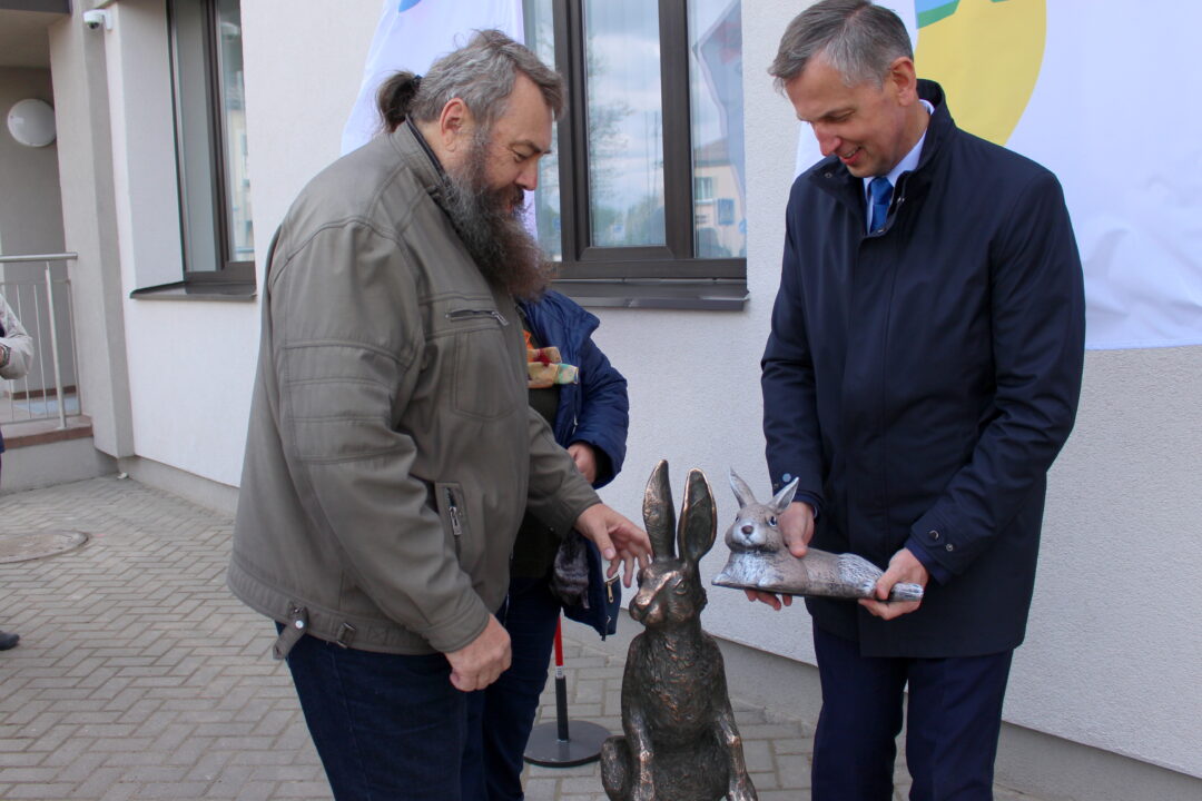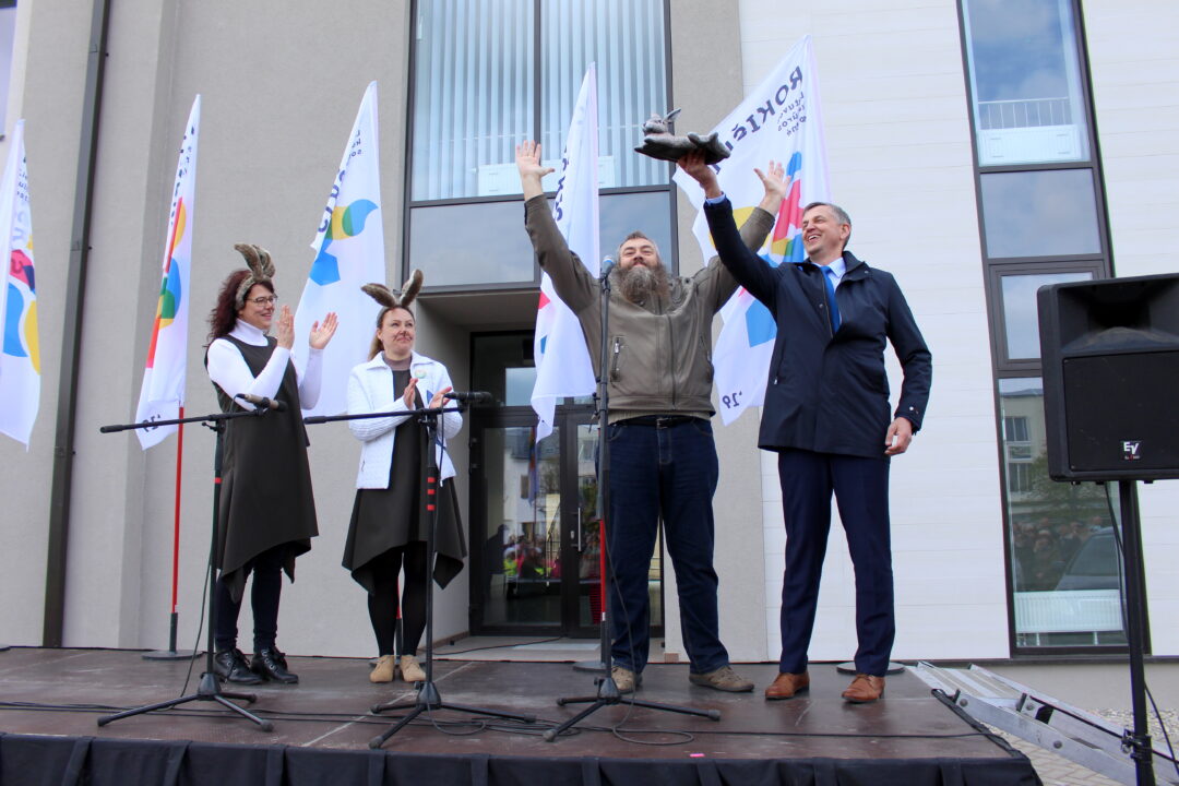 Lygiai vidurdienį prie renovuojamo bibliotekos pastato visus rokiškėnus sukvietė…kiškis. Čia iškilmingai buvo atidengta kiškio skulptūra, kuri simbolizuoja gražią legendą apie miesto pavadinimą.