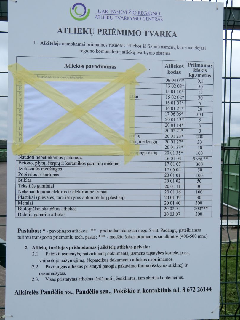 UAB Panevėžio regiono atliekų tvarkymo centro direktorius Gintautas Ulys prašo gyventojų dar nevežti į aikštelę pavojingų atliekų, t. y. medžiagų, turinčių asbesto; taip pat tepalinės alyvos; tepalo–oro filtrų; tirpiklių; rūgščių; šaldytuvų; televizorių ir kitų buityje susidarančių pavojingų atliekų. Jos bus pradėtos priimti vėliau, gavus licenciją. Apie tai bus papildomai pranešta. Aikštelėje dirbs vienas darbuotojas.