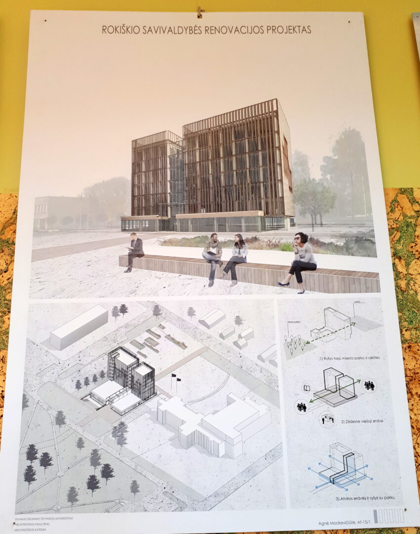 „Mūsų skyrius bendradarbiauja su VGTU ir Vilniaus dailės akademija. Esame pasirašę sutartis. Eksponuojami darbai – VGTU ketvirtakursių. Kada nors mums teks renovuoti savivaldybės pastatą. Pernai susisiekiau su universitetu ir pasiūliau idėją. Studentai atvyko apžiūrėti ir išmatuoti pastato. Kiekvienas suprojektavo pagal savo viziją. Kai kurie pažvelgė plačiau pagal studijų programos reikalavimus, tarkim, sužemino pastatą ir pan. Žinoma, realiai tokių projektų mes negalime įgyvendinti dėl lėšų trūkumo. Tačiau idėjos nuostabios. Kas ten žino, gal kurias tikrai įgyvendinsime“, – dėstė I. Trumpaitė.