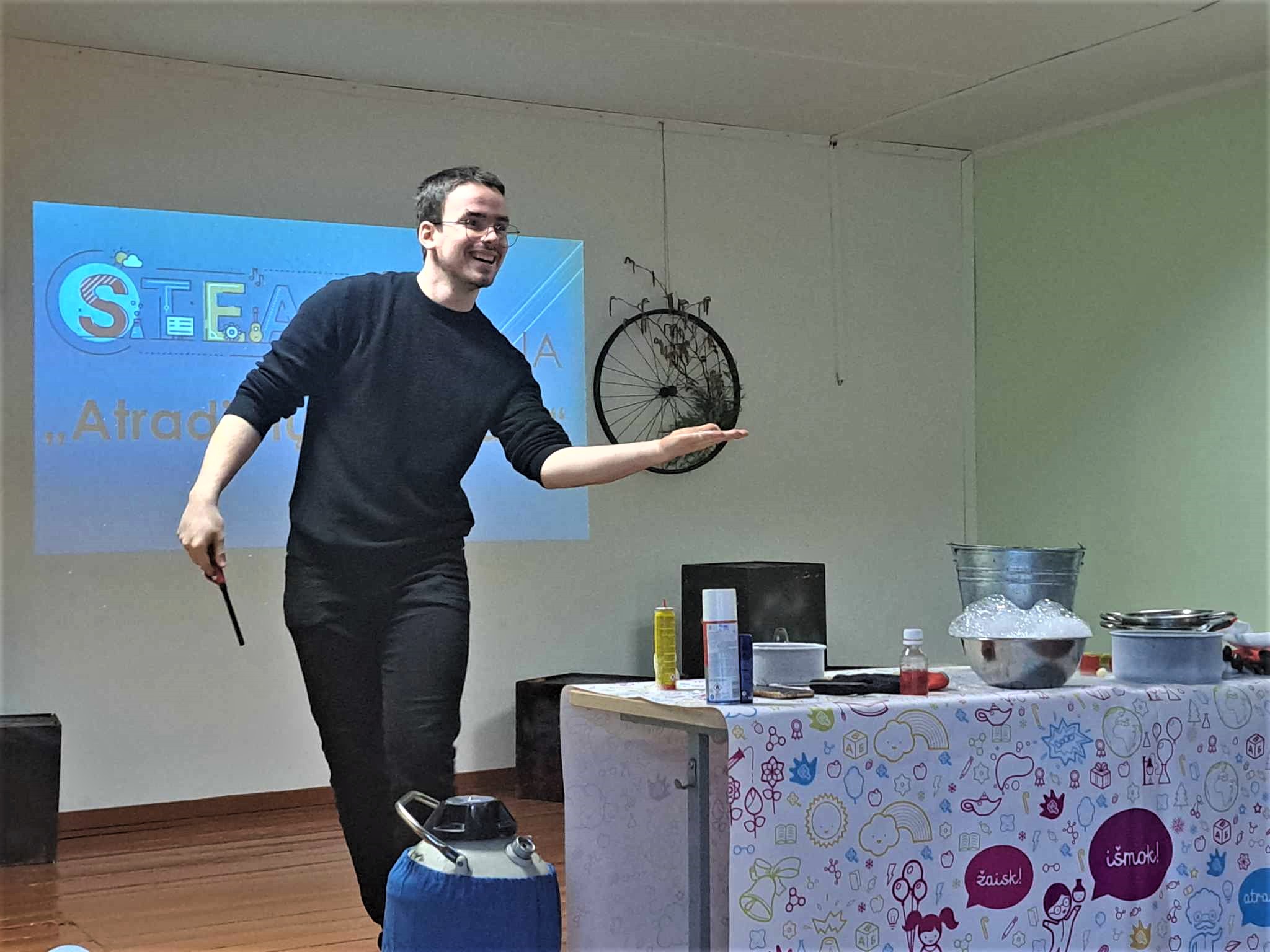 Daugiausia susidomėjimo bei emocijų sulaukė STEAM dienos atidarymo šventė. Mokslinio šou ,,Atradėjas“ edukatorius Ignas daugeliui atrodė tarsi šiuolaikiškas burtininkas, sugebėjęs padaryti lyg ir neįmanomus dalykus – laikyti ugnį rankoje, -200 laipsnių Celsijaus temperatūros skystą azotą saugiai užpilti ant pirštų, leisti iš burnos drakono ugnį primenančius dūmus bei sušaldyti spragintus kukurūzus. Puikiai suvaldantis daugiau nei šimto pradinukų auditoriją šou vedėjas pasiūlė dar ir eksperimentus su elektra. „Nebandykite to daryti savo namuose“, – perspėjo edukatorius, „Tesla šou“ parodęs, kaip suvaldyti žaibą. Šį pasirodymą vainikavo dainos mokymasis anglų kalba.