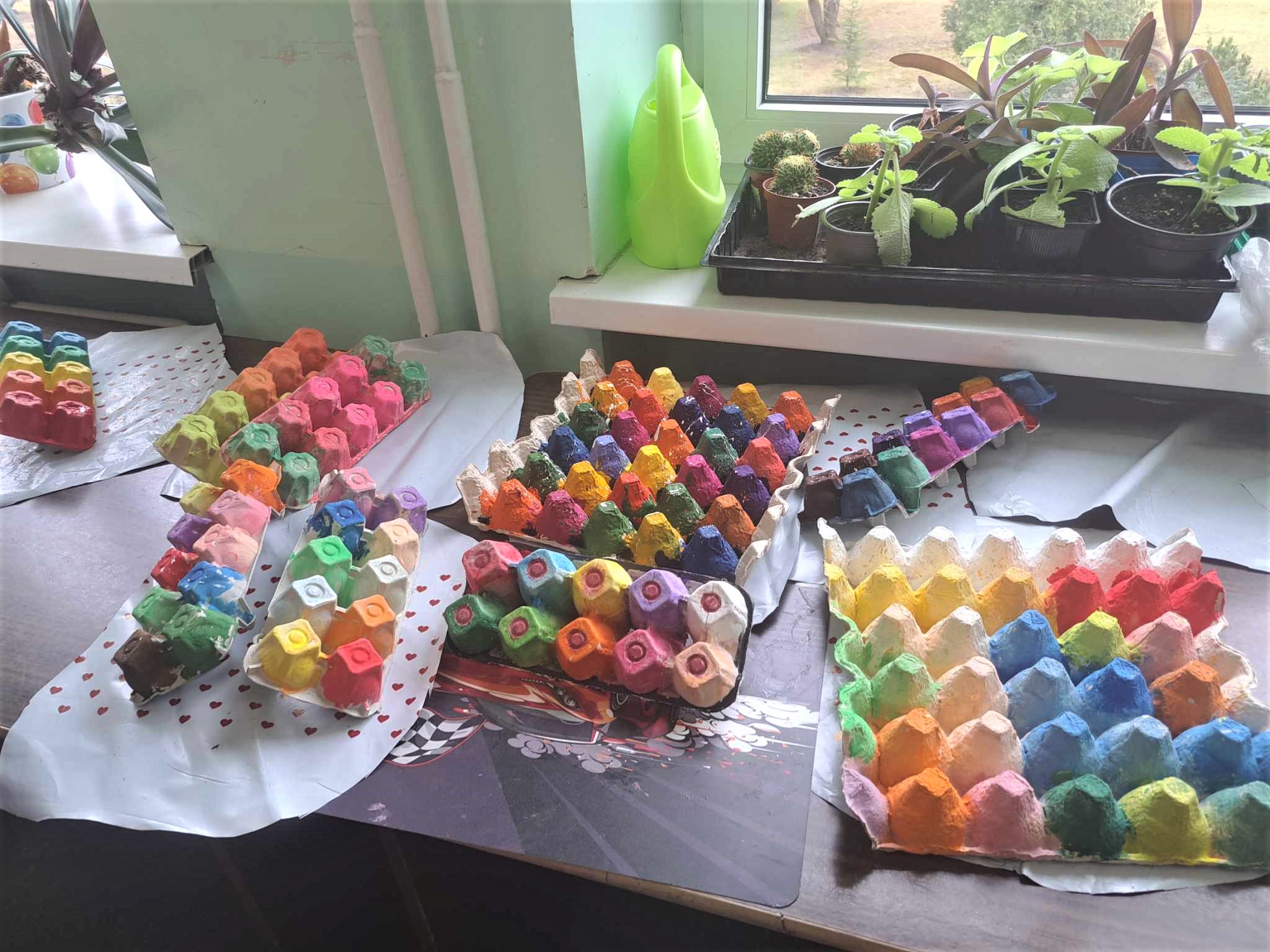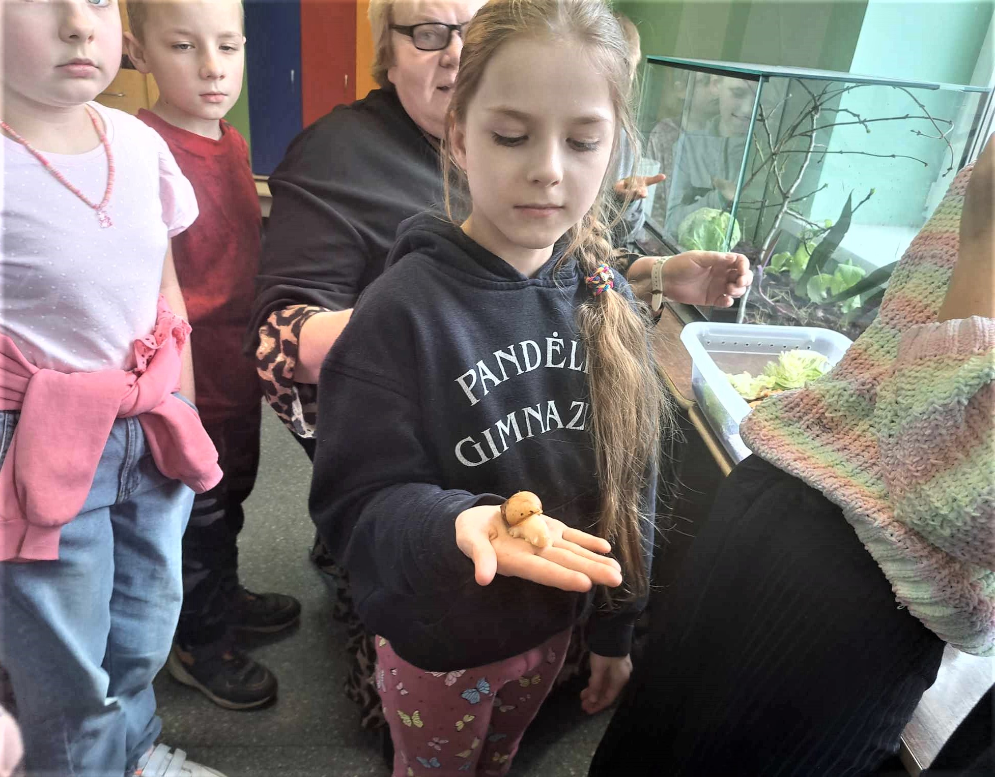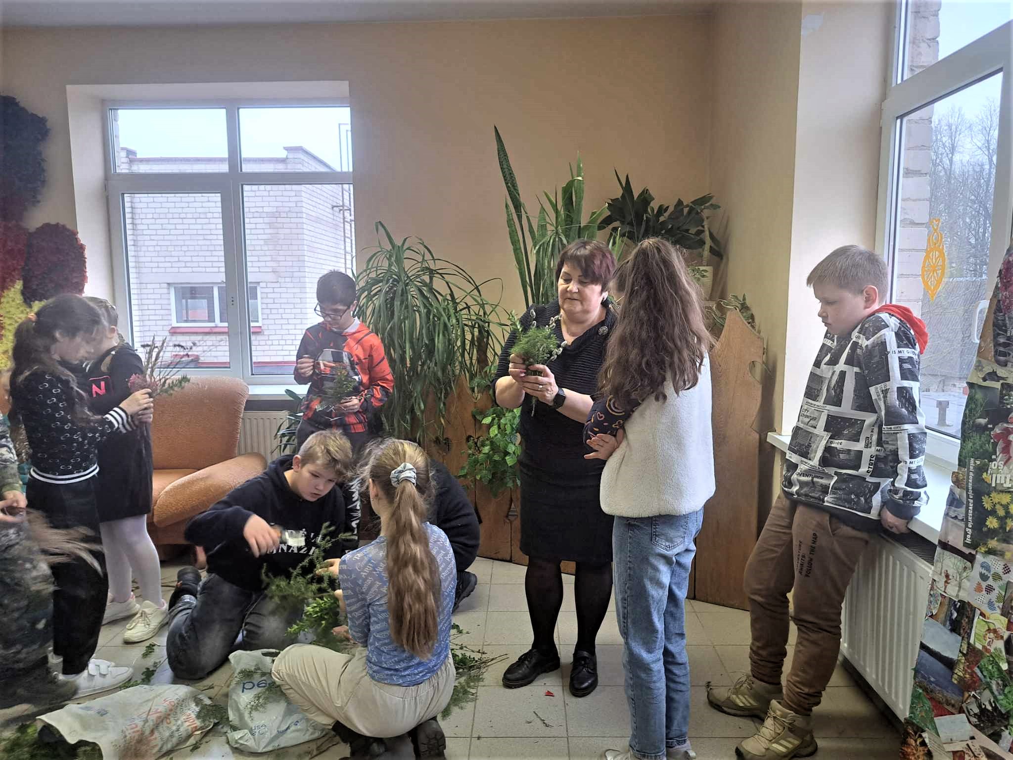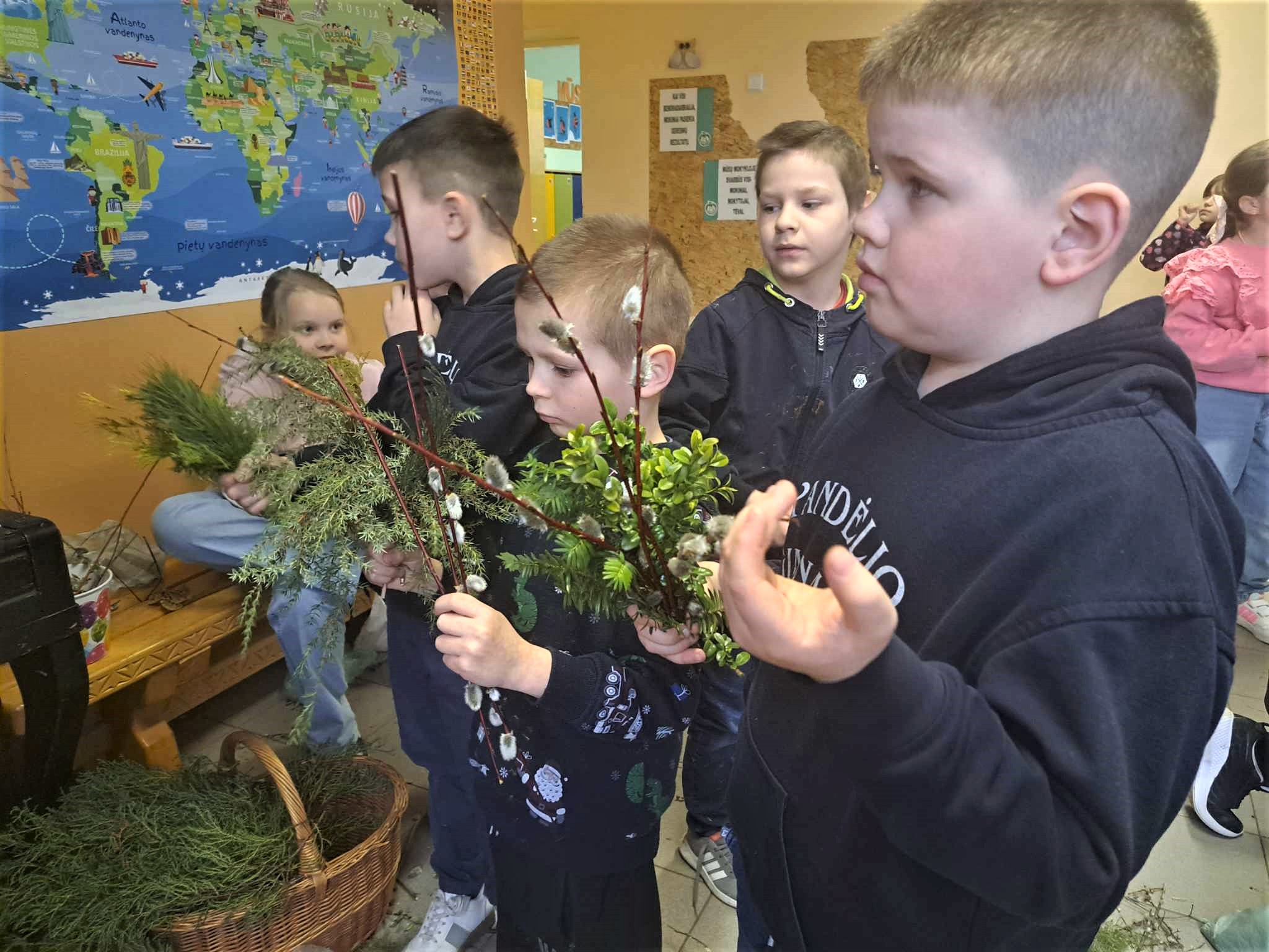 Pandėlio gimnazijos pradinėms klasėms skirtame korpuse nuo ryto buvo daug šurmulio ir judesio. Tik atėję į mokyklą, moksleiviai iš tuščių kiaušinių dėklų ruošė detales didžiajam velykiniam margučiui, rišo verbų puokšteles. Prie pandėliečių prisijungė ir pirmokai kartu su savo mokytoja Sigita Keršuliene iš Subačiaus (Kupiškio r.) gimnazijos Noriūnų Jono Černiaus pagrindinio ugdymo skyriaus.