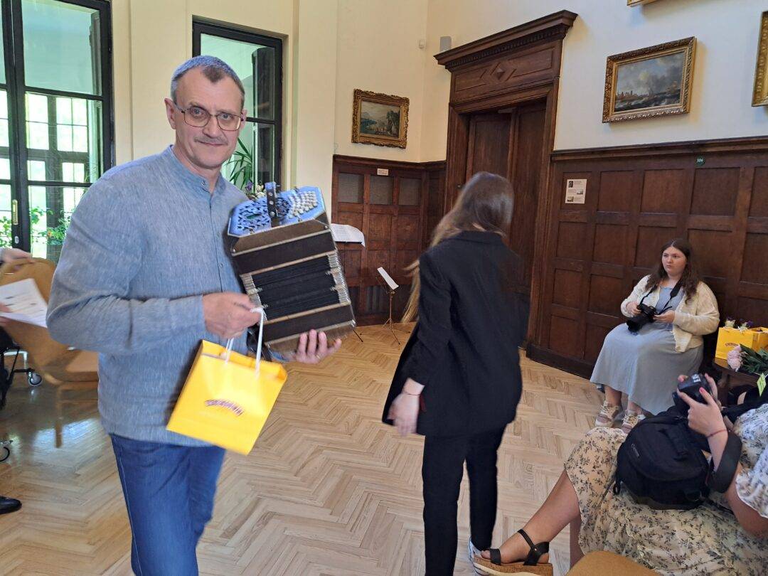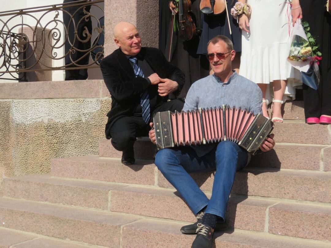 Įvairiame amplua pasirodė vyrai. B. Dvariono muzikos mokyklos dėstytojas, Vilniaus šv. Petro ir Povilo bažnyčios vargonininkas Algirdas Biveinis sėdo prie fortepijono. Po atliko F. Listo kūrinio „Vakaro harmonijos“ publika prapliupo plojimais, o maestro sutiko sugroti dar vieną kūrinį. Sigitas Stasikėlis atvažiavo net iš Plungės. Jis yra pasirinkęs liaudies muziką ir groja folkloro ansamblyje, todėl ir į dvaro menę susirinkę žiūrovai išgirdo liaudies instrumentu – bandonija – grojamus polką ir valsą.