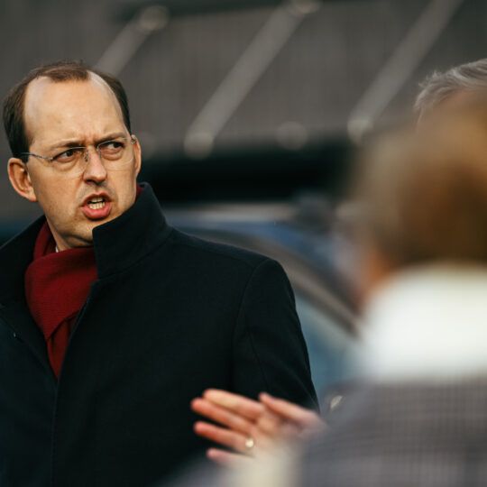 Apie 14 valandą į savivaldybę atvykęs ministras mero Ramūno Godeliausko kabinete susitiko su rajono vadovais, Seimo nariais Jonu Jaručiu ir Vidmantu Kanopa. Pokalbio metu buvo aptarti svarbiausi kelių, dviračių takų, projektų finansavimų klausimai, tarpmiestinių autobusų eismo perspektyvos ir traukinio susisiekimo klausimas. Suderinta informacija, jog Taikos g. ir Respublikos g. bus paženklintos iki lapkričio 20 d. Po susitikimo ministras apžiūrėjo problemiškiausius kelių ruožus ir objektus, įskaitant pėsčiųjų taką Respublikos g., kelią Biržai–Pandėlys–Rokiškis ir kelio Rokiškis–Juodupė–Onuškis–Ilzenbergas atkarpas.