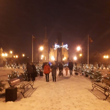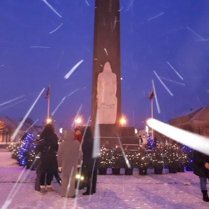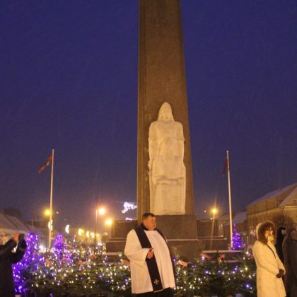 Šeštadienį prieš 17 val. Nepriklausomybės aikštėje įžiebtas rytoj prasidedančio Advento vainikas. Jis – pagrindinis artėjančių didžiųjų metų švenčių laukimo akcentas. Toks gyvų eglaičių vainikas – pirmą kartą. Jį pašventinęs Rokiškio dekanas, kun. Eimantas Novikas visiems palinkėjo sutarimo, ramybės ir kvietė prie vainiko ateiti ne tik per jo įžiebimą. Vainiko įžiebimo šventę adventiniais kūriniais papuošė “Saulala”. Ir dangus atsiuntė dovaną – pabiro gausios snaigės, išryškindamos mirguliuojantį Advento vainiką.