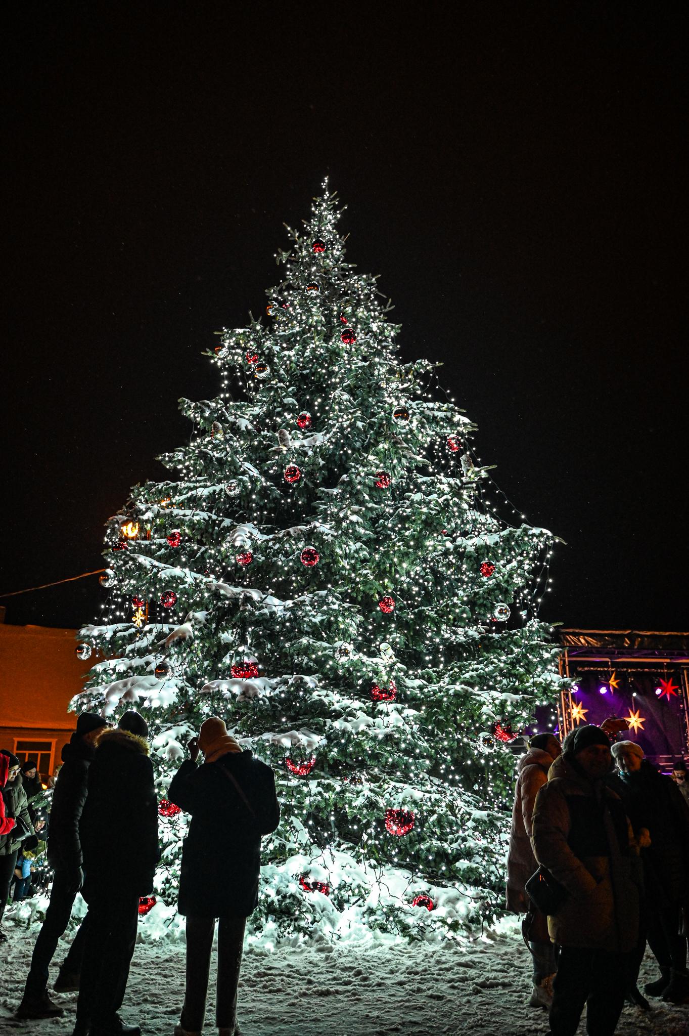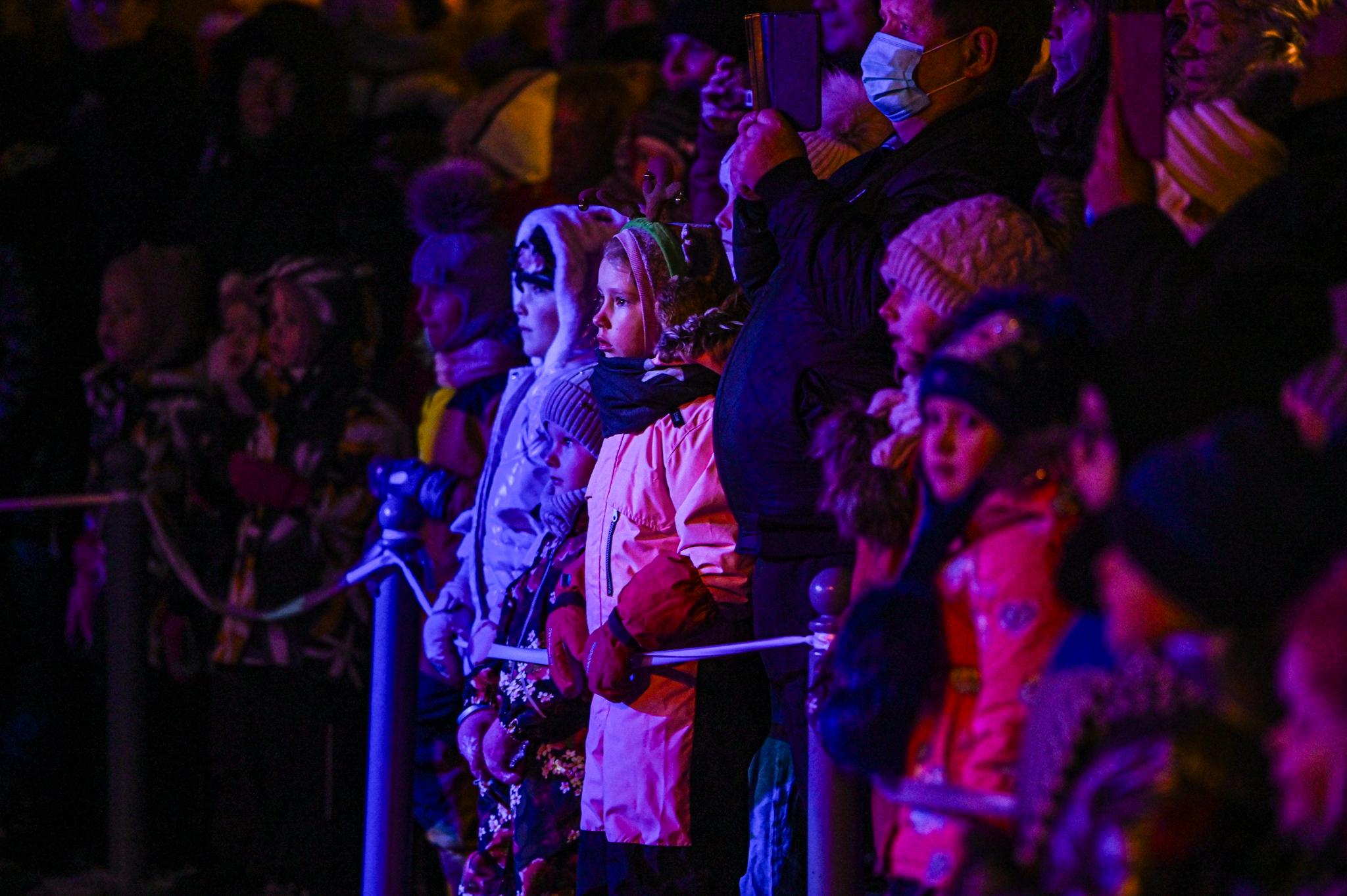 Gausiai į įžiebimo šventę susirinkę rokiškėnai džiaugėsi egle ir jos puošyba. Medis padabintas raudonais ir sidabriniais žaislais, nušvito baltomis lemputėmis, o ant kelių šakų nutūpė ir dešimt mažų pelėdų.