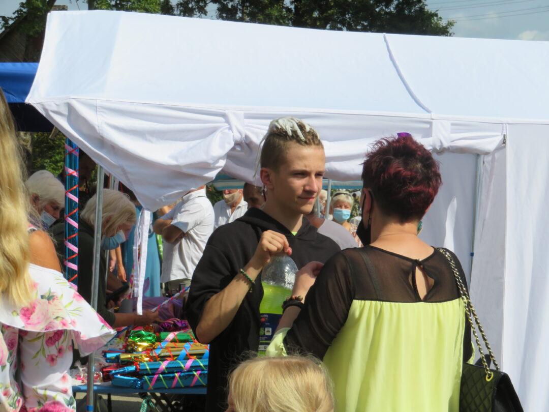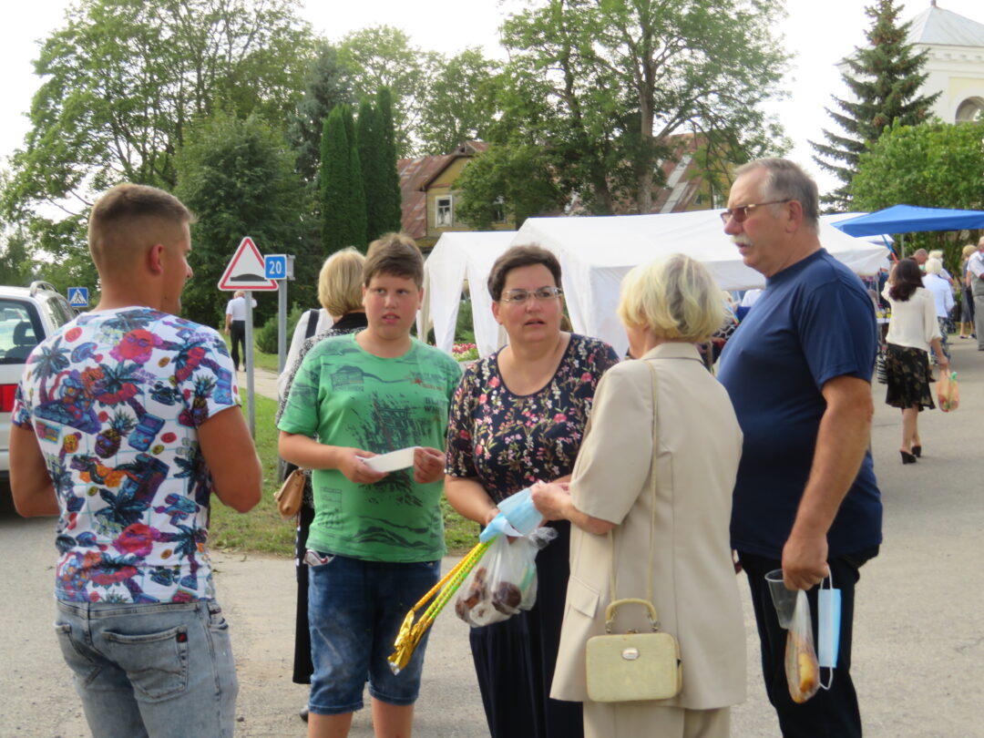 Po šv. Mišių Jūžintų Šv. arkangelo Mykolo bažnyčioje į gatvę plūstelėjo didelė minia. Vieni skubėjo įsigyti tradicinių puošnių saldainių, meduolių ar kitų lauktuvių namiškiams, kiti leidosi grožėtis amatininkų darbais – nuo trapių šiaudinių sodų iki kalvystės darbų.