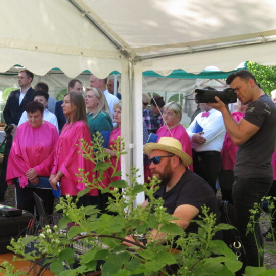 Koncertinėje programoje pasirodė vien mūsų rajono meno kolektyvai – tai Rokiškio kultūros centro rajono padalinio Jūžintų sakralinės muzikos kolektyvas, Kultūros centro vyrų vokalinis ansamblis, „Artrito“ klubo mišrus vokalinis ansamblis „Šypsena“ bei neįgaliųjų draugijos kolektyvas „Laukuva“. Jie tarsi varžėsi, kuris smarkiau uždegs publiką. Dalis žiūrovų neiškentė, pakilo nuo suolų ir šoko priešais sceną.