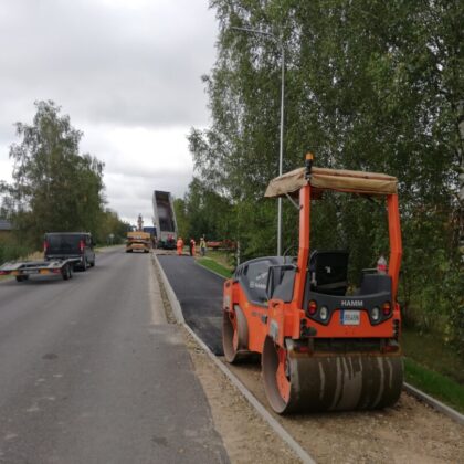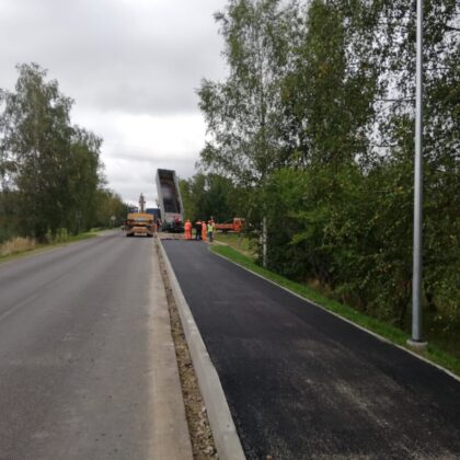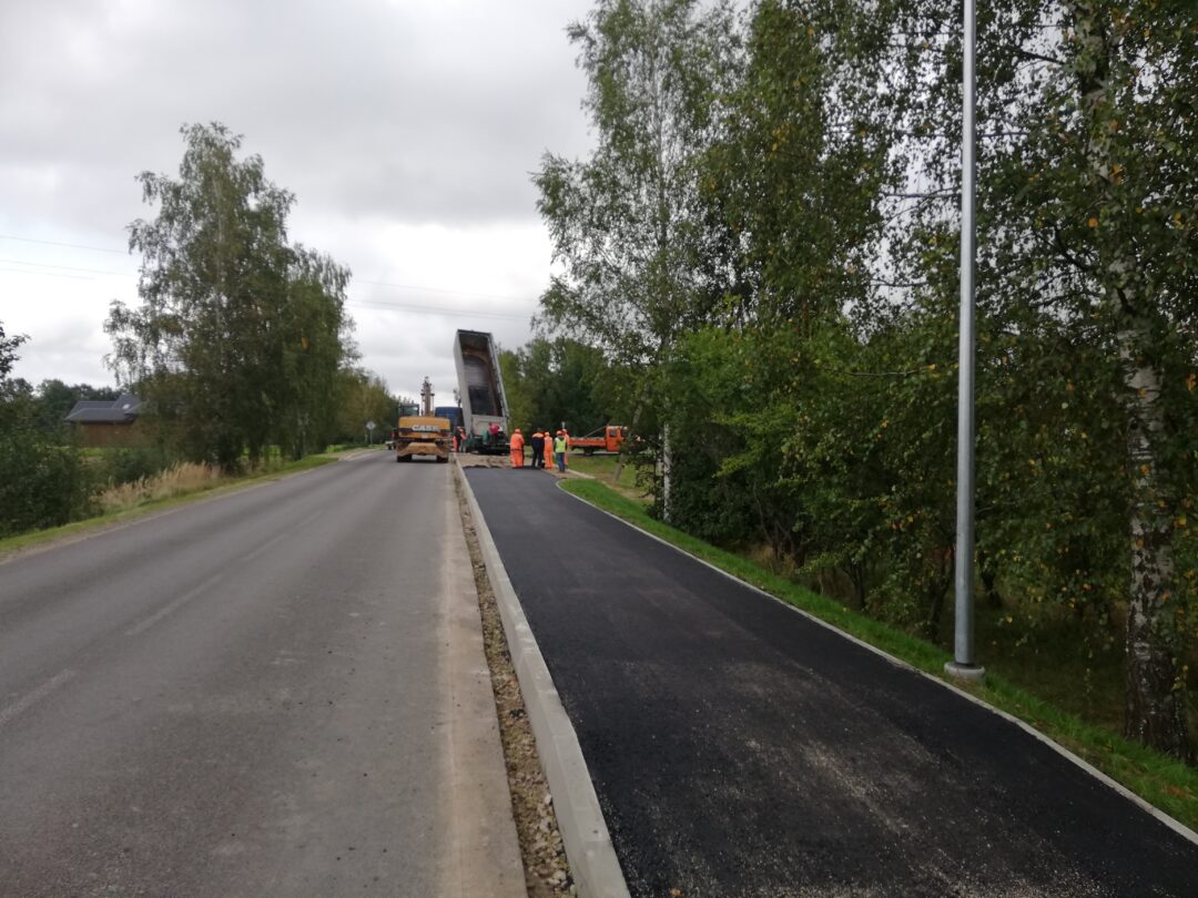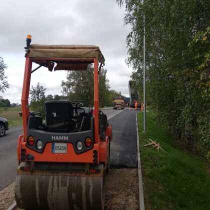Kavoliškio kaime praėjusį penktadienį vyko pėsčiųjų ir dviračių tako atidarymo šventė. Nors takas atidarytas, darbai tęsiami – šiandien ir toliau intensyviai dirbo sunkioji technika, buvo liejamas asfaltas.