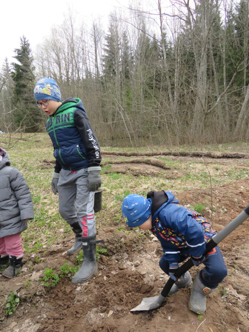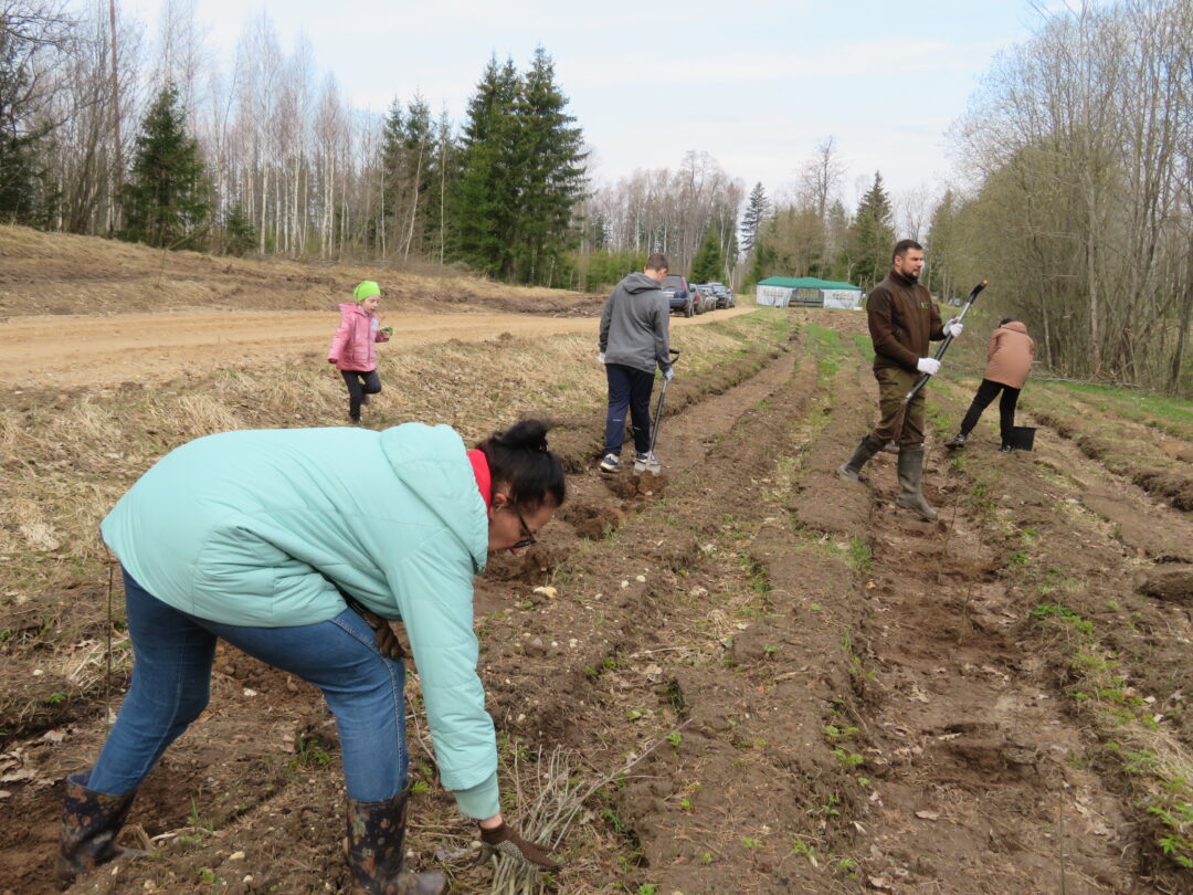 Talkininkai daug prisilankstė, nes kasėjams teko matuoti atstumą tarp eilėmis sodinamų medelių. Atstumas turėjo būti 120 cm – tokio ilgio yra kastuvas.