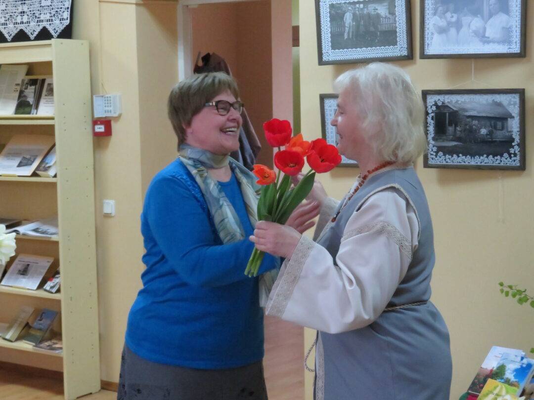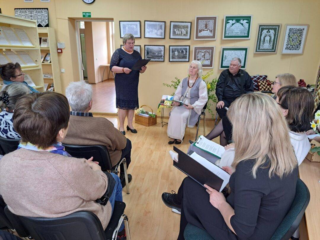 Popietės dalyviai negailėjo pagyrų poetei, įsigijo jos knygų, pabendravo prie kavos, arbatos puodelio, grožėjosi obeliečių Gitos Kolosovienės ir jos dukros Rūtos karpiniais bei Bronislavos Kurklietienės pintais darbais.