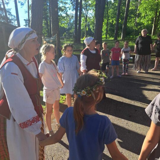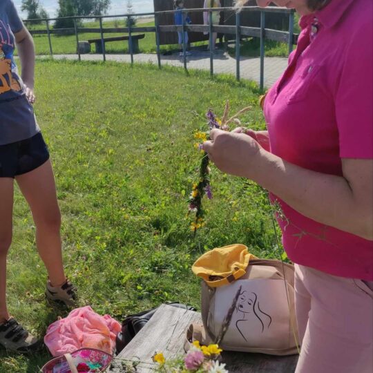 Antrąją dieną pėsčiomis žvyruotu keliu žygiuota į Buteikių kaime Jolantos Butėnienės įkurtą vaistažolių sodybą. Regos, klausos, uoslės, skonio ir lytėjimo receptoriais teikiama informacija plėtojo žolynų pasaulio pažinimo žinias. Ši viešnagė, kaip ir ramus pasivaikščiojimas iki sodybos gimtinės laukų platybėmis, paliko vaikams ryškių įspūdžių. Popiečiu užkaitinus saulutei vasarotojai išsiruošė maudytis. Poilsiaujant ant kranto vadovės pageidaujančius mokė pinti žolynų vainikus. Ir, nors trumpiausios vasaros nakties dar reikėjo šiek tiek palaukti, niekas nenusiminė – šiais vainikais mergaitės pasipuošė vakare vykusioje Žiobiškio bendruomenės kurtoje lietuvių liaudies kūrybos ir muzikos instrumentų pristatymo vakaronėje „Iš močiutės skrynios“. Ji praėjo labai smagiai – jos metu ūkininkaičiai aktyviai muzikavo, dainavo, žaidė ir smagiai šoko. Vėliau vakarojo prie laužo.