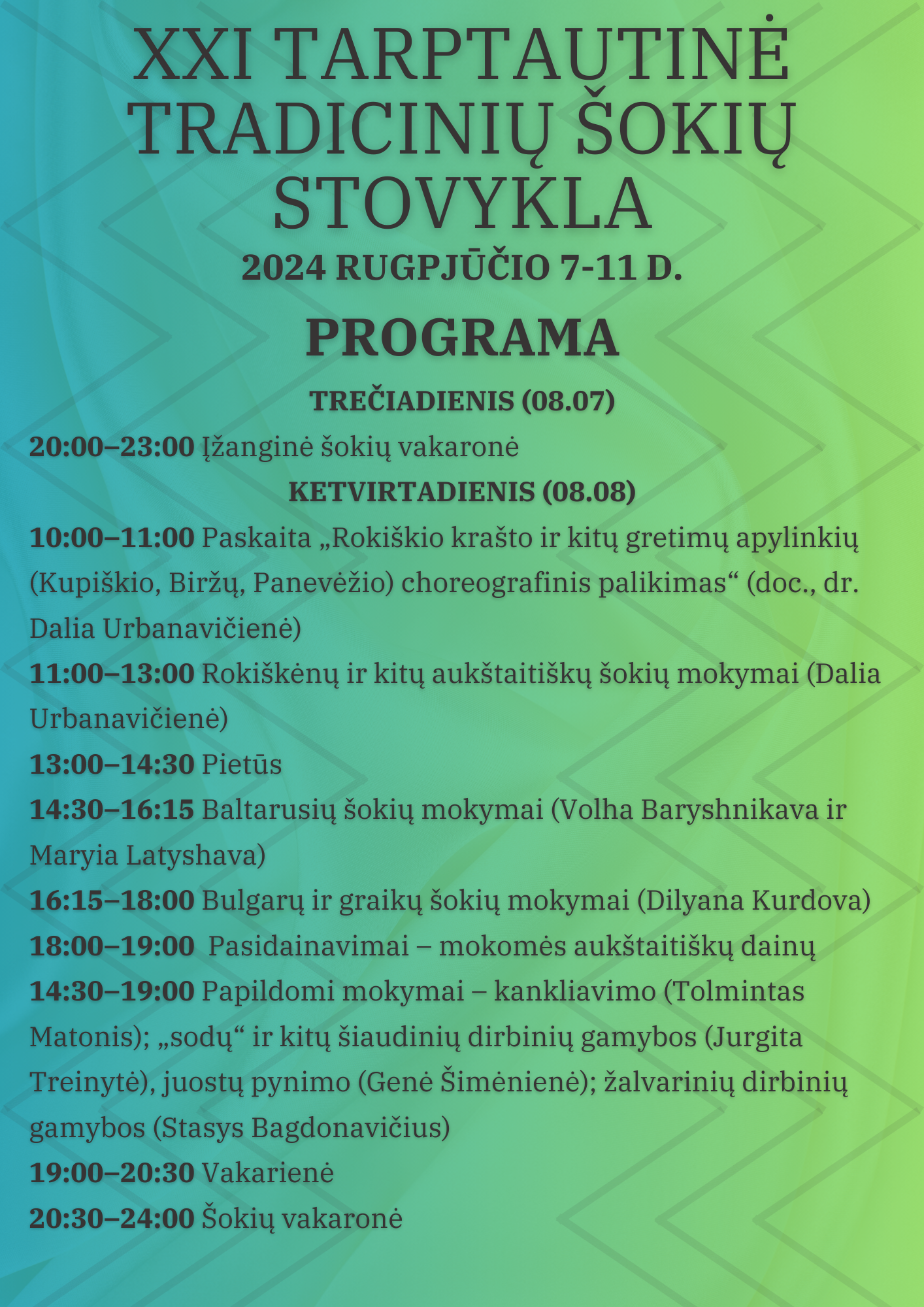 XXI tarptautinės tradicinių šokių stovyklos programa