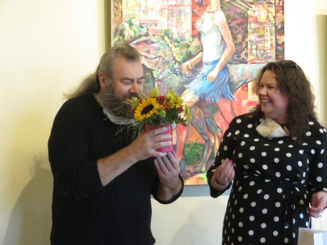 Sekmadienį į parodos atidarymą susirinkę dailininko ir jo kūrybos gerbėjai rado tai, ko ir tikėjosi, – ne tik ryškiaspalvius, didelio formato kūrinius, bet ir didelę dozę humoro iš jų autoriaus. A. Bagdoną sveikino gausus būrys bendraklasių ir kolegų, pažįstamų. Dvi nedidukės gerbėjos atėjo tam, kad pasimatytų su… Seneliu Kalėda. Pasak A. Bagdono, nuo gruodžio pradžios iki Trijų Karalių jis esą Lietuvos vyriausiasis Senelis Kalėda, o po to – tiesiog dailininkas. Kai kurie sveikintojai nustebino žemiškomis dovanomis – dailininkas gavo kumpį.