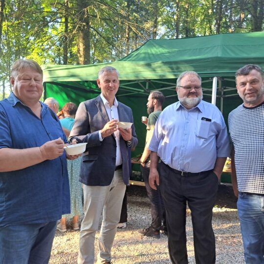 Šventės pradžią paskelbė pagrindine kaimo gatve pražygiavęs Paįstrio kultūros centro ir jaunimo pučiamųjų instrumentų orkestras „Dūdorėliai“ kartu su Vadoklių kultūros centro šokių kolektyvu „Šokių mūza“. Sukaktuvininkams sveikinimo žodžius tarė Rokiškio rajono meras Ramūnas Godeliauskas, Seimo narys Jonas Jarutis, Rokiškio vietos veiklos grupės administravimo vadovė Raimonda Stankevičiūtė -Vilimienė, Rokiškio kaimiškosios seniūnijos seniūnė Dalia Janulienė ir kiti.