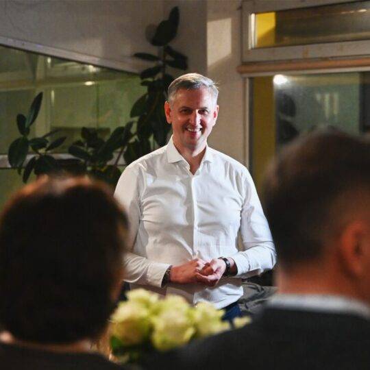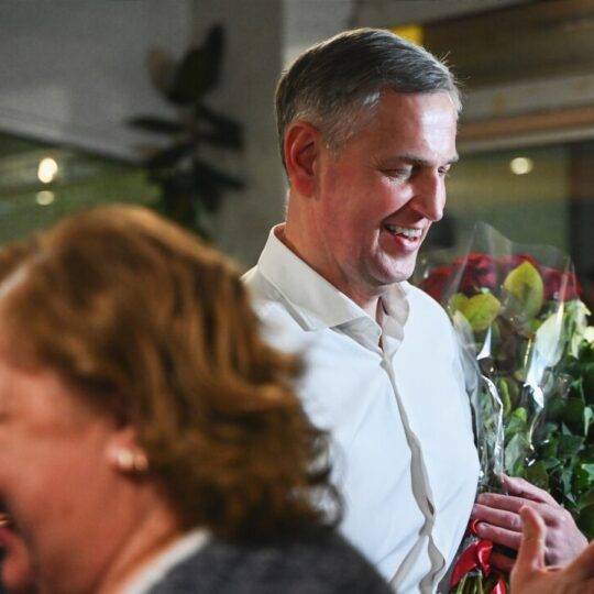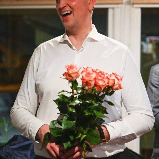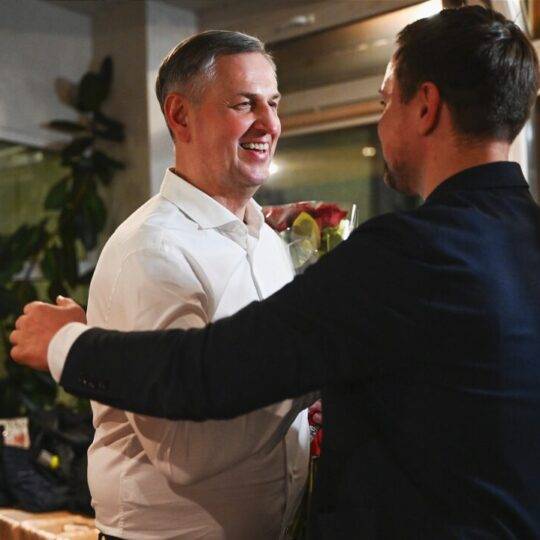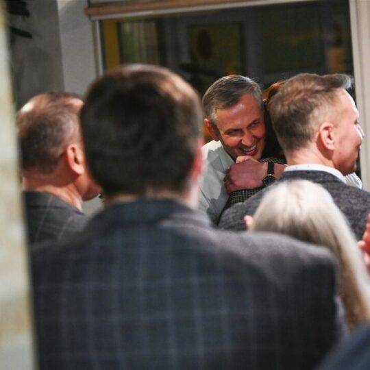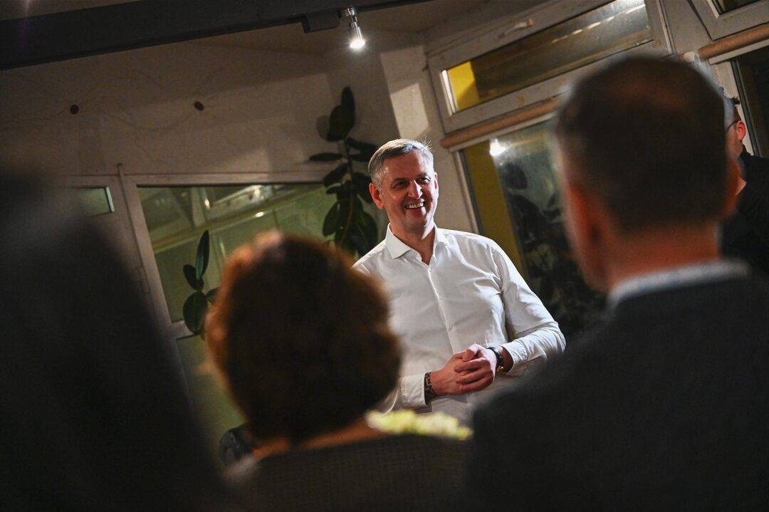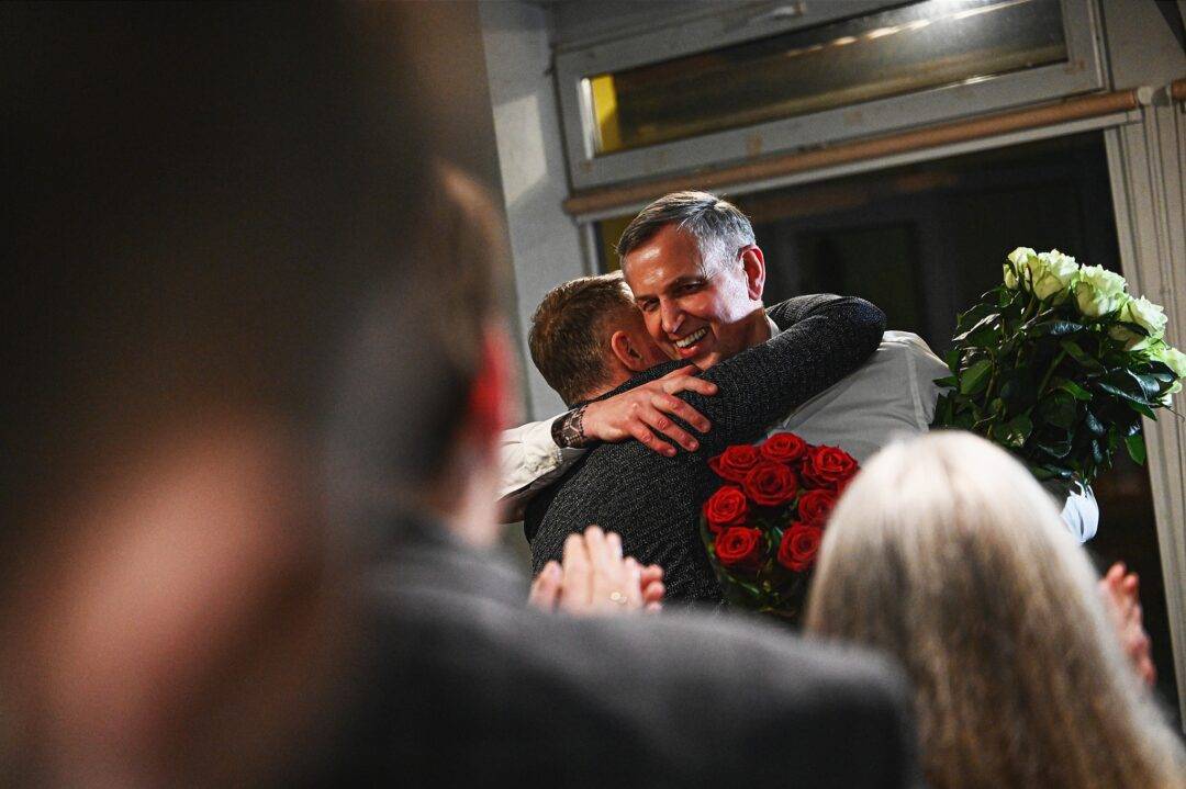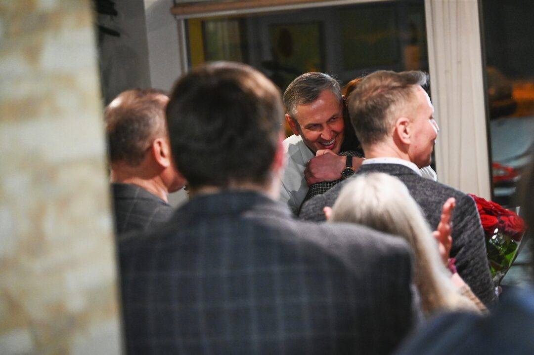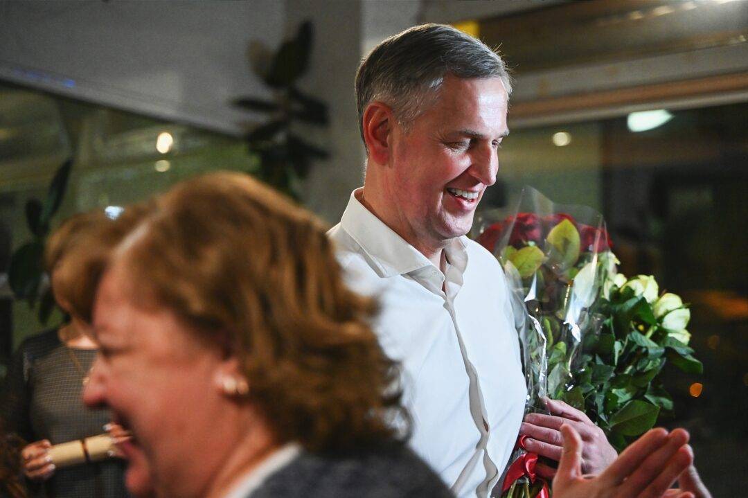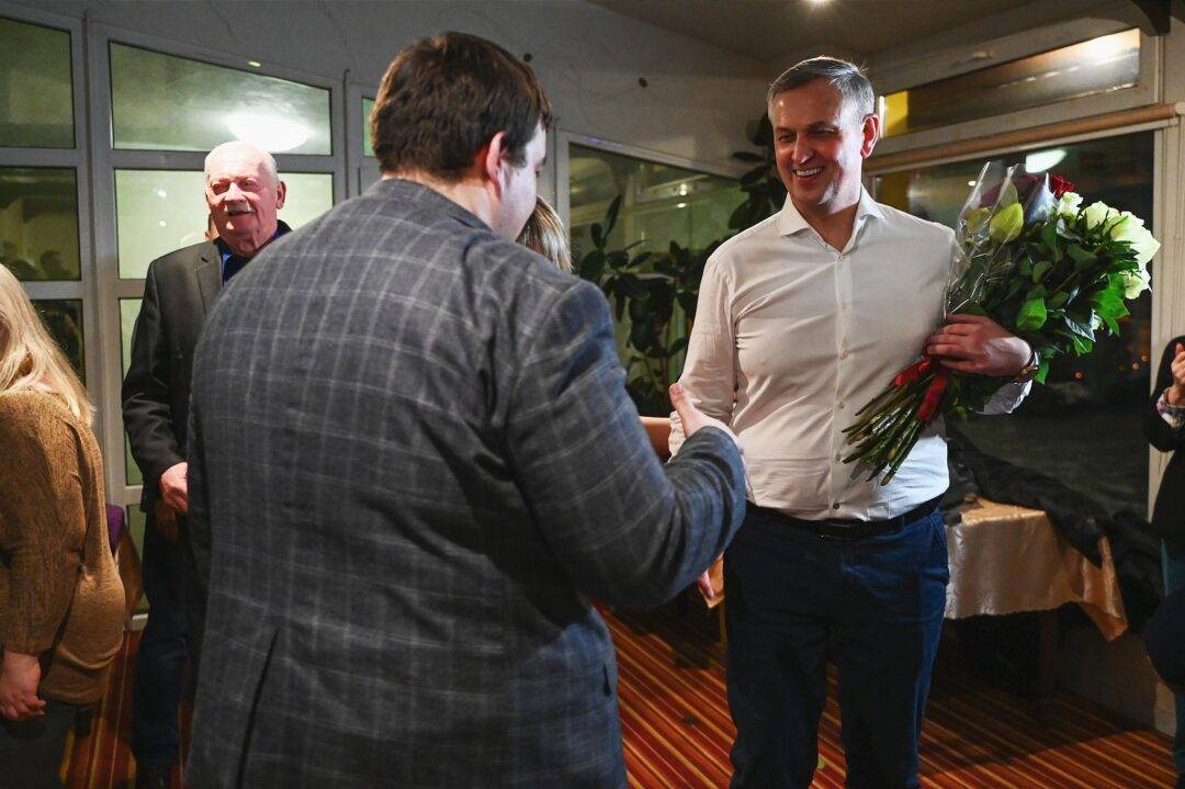 Socialdemokratai R. Godeliauską pradėjo sveikinti dar nesulaukę visų rezultatų, o mero veide šypsena neblėso visą ilgą vakarą.