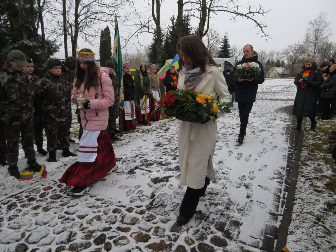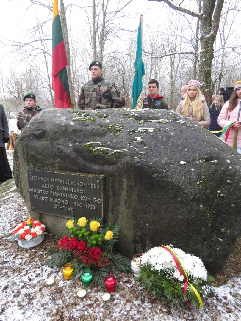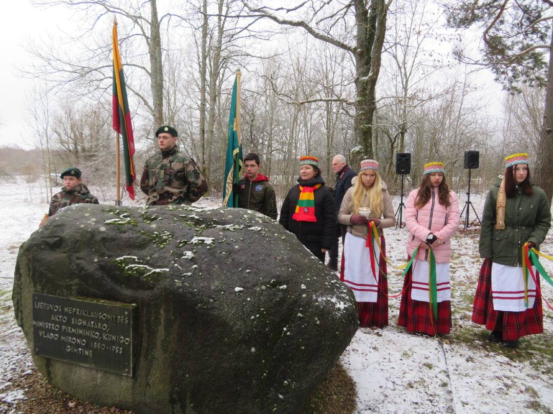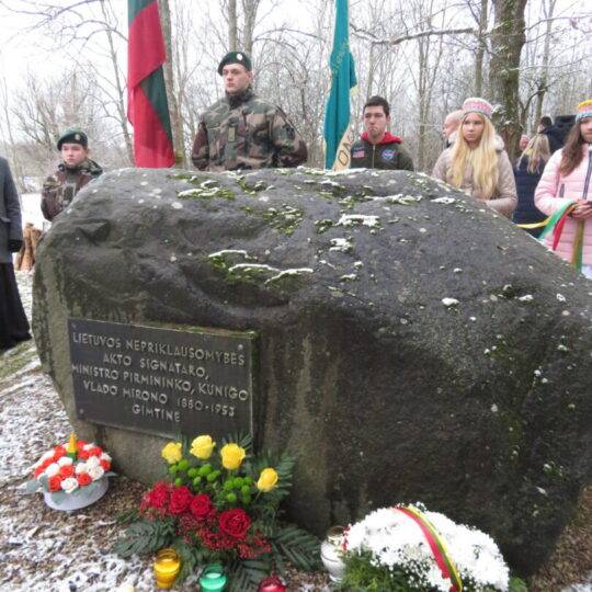Prie paminklinių akmenų padėtos trispalvių gėlių puokštės, uždegtos žvakutės. Telefoniniu ryšiu jungėsi ir apie signatarus bei šių dienų aktualijas kalbėjo kraštietė, istorikė, knygos apie V.Mironą autorė Vilma Bukaitė, istorikas Darius Juodis bei LR Seimo narys, Nacionalinio saugumo ir gynybos komiteto pirmininkas Laurynas Kasčiūnas. Dalyvavo ir prasmingai pasisakė aktyvūs visuomenininkai, seniūnijų seniūnai, rajono valdžios atstovai.