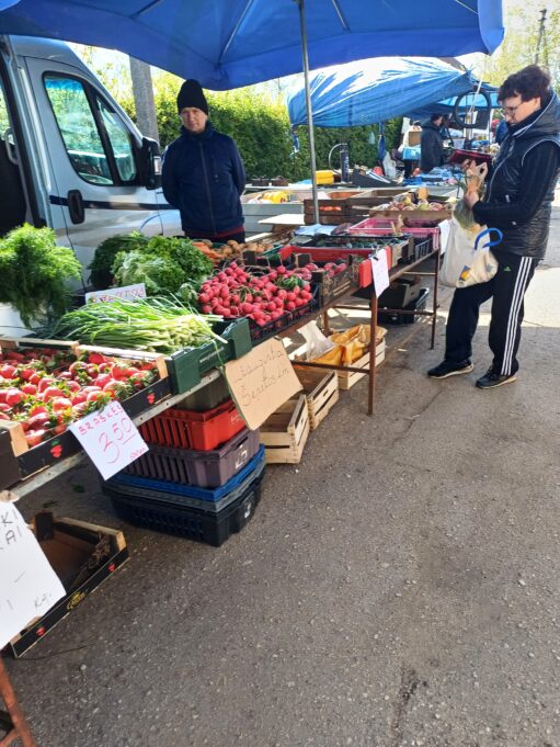 Galima buvo nusipirkti ir nelietuviškos šviežienos – šviežių bulvių iš Kipro už 1,5 Eur, braškių iš Graikijos už 3,5–6 Eur, šviežių lenkiškų česnakų ryšulėlį už 8 Eur.