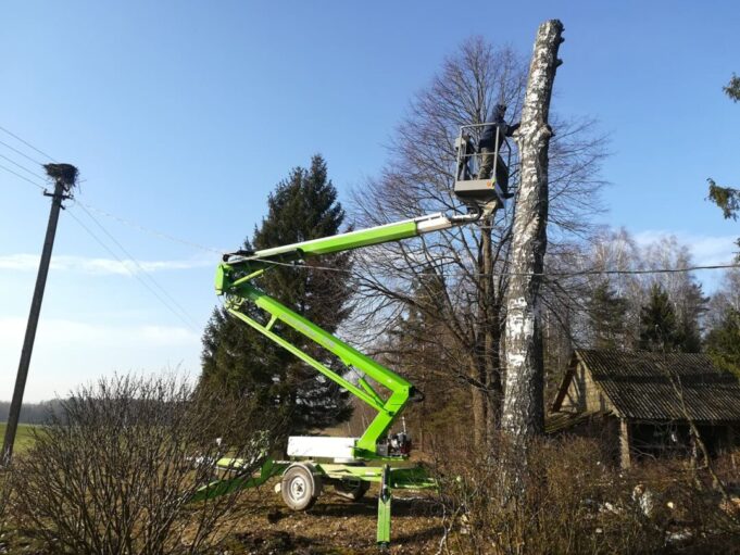 Kai kurių kaminų be keltuvo neišvalysi. Jis gelbsti ir šalinant ar genint medžius. Rokiškio rajono ugniagesių savanorių draugijos nuotr.
