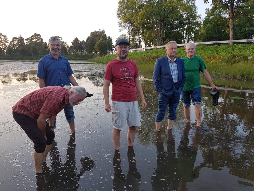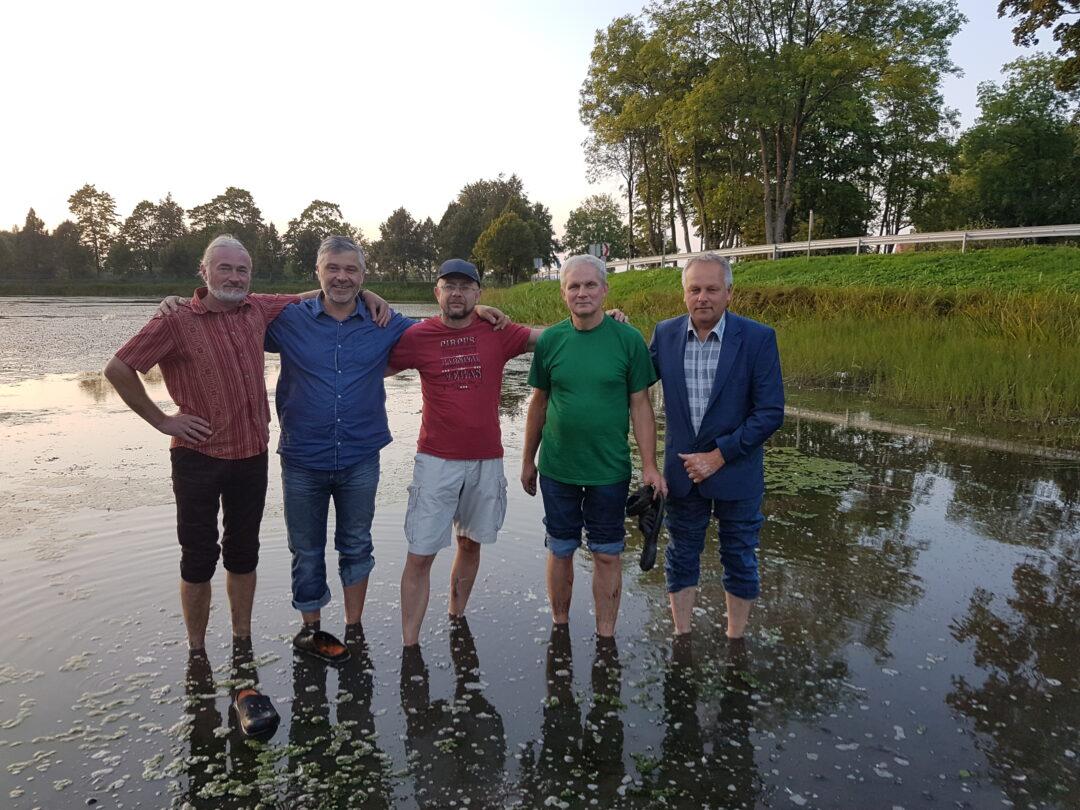 O iš tikro visuomenininkai sumanė „šposą“, kaip patys teigė. Jie įbrido basi į dvaro tvenkinį. Taip norėta parodyti visuomenei tvenkinių būklę. Kojos sušlapo vos iki gurnelių, o vienas iš įbridusiųjų, Valius Kazlauskas, beveik nesušlapo kostiuminių kelnių. „Tvenkinius kasdami, dvarininkai juos tikrai ne tokius įsivaizdavo“, – sakė vyrai ir juokavo, kad fotografuodamiesi viduryje tvenkinio „ieško tinkamiausios vietos Tyzenhauzams įamžinti“.