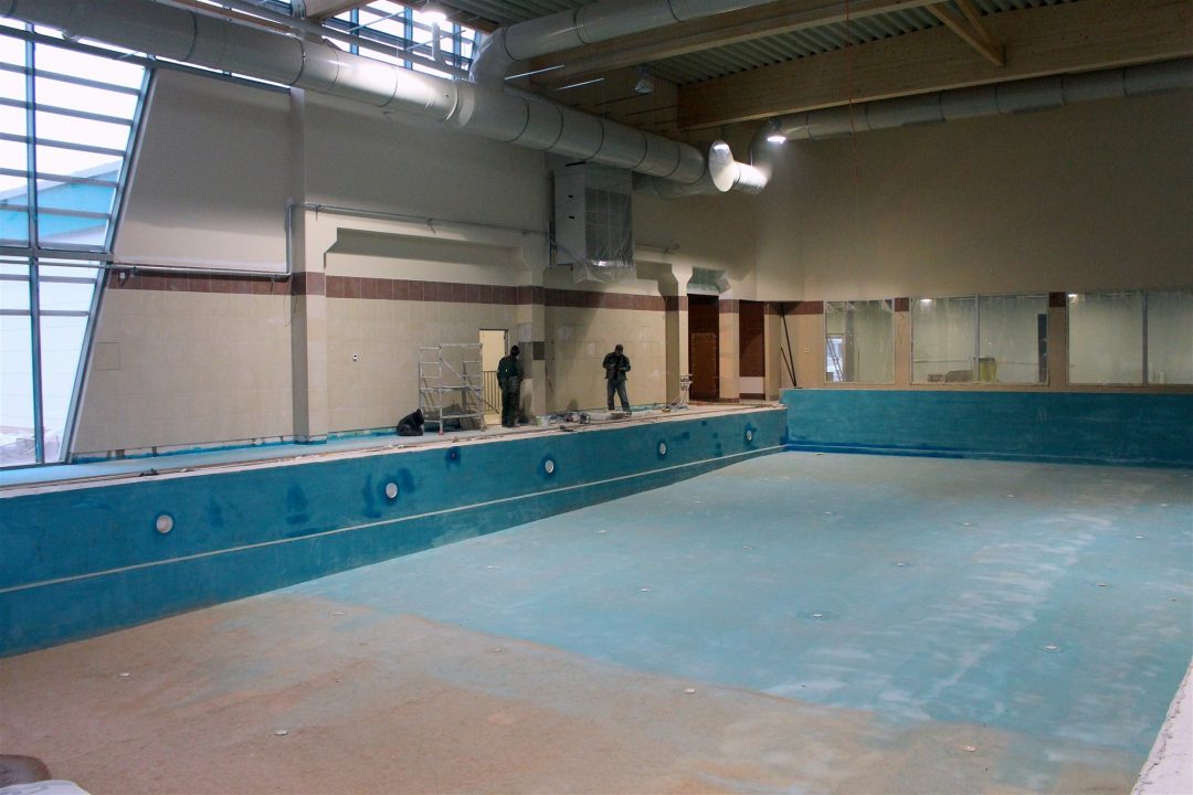 Paskutinį kartą „Gimtasis…“ statomame baseine lankėsi pernai vasarą. Nuo to laiko pasistūmėta nemažai. Šio objekto statybos vadovas UAB „Henvida“ direktoriaus pavaduotojas Vidas Laguckas sakė, jog darbai vyksta pagal grafikus. Duris lankytojams baseinas turėtų atverti šių metų rugsėjį. „Statybos ir įrengimo darbai bus baigti gegužę, tačiau dar lauks žemių lyginimo, žolės sėjimo ir kiti aplinkos tvarkymo darbai. Į naujas patalpas atkeliaus nauji baldai. Šiuo metu liko sutvarkyti apdailą ir elektros instaliaciją. Atliekame tam tikrus bandymus“, – kalbėjo pašnekovas.