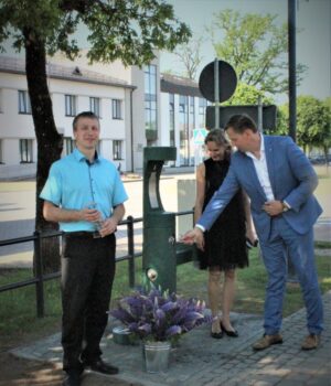 Trečiadienį vandens stotelė jau pradėjo veikti, o kad rokiškėnai ir miesto svečiai nepraeitų pro šalį jos nepastebėję, šalia atsirado kibiras ką tik priskintų lubinų. Pasirodo, ne iš pareigos, o tiesiog iš noro dalintis grožiu, jį čia pastatė Rokiškio savivaldybės architektūros ir paveldosaugos skyriaus vedėjo pavaduotoja Ingrida Trumpaitė. „Važiavau iš kaimo ir priskyniau pilną glėbį lubinų, o „Bikuvoj“ nupirkau kibirą. Pagalvojau, kad atsidaro vandens stotelė, kodėl gi nepažymėjus šio įvykio?“, – juokavo I. Trumpaitė.